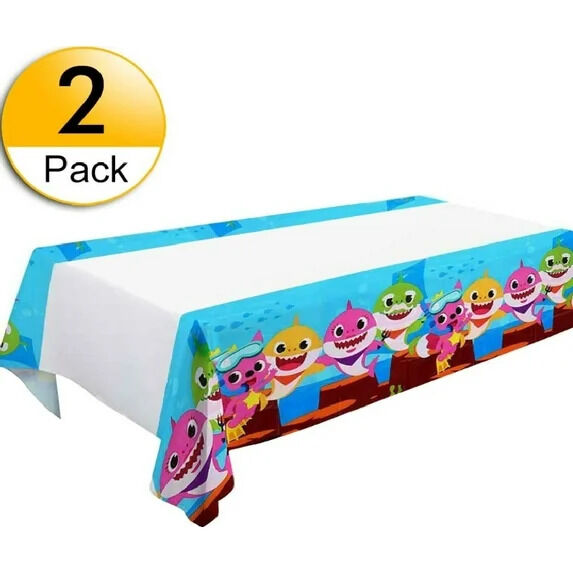 Make your little one's party extra special with this Baby Shark 2pc Plastic Tablecloth Set. The set includes a durable plastic tablecloth featuring the beloved Shark brand and a fun shark theme. Perfect for any young fan of the popular children's song, this tablecloth will add a touch of whimsy to your party decor.