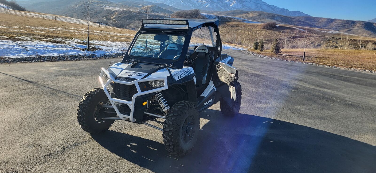 Great machine just dont have time to enjoy it. Runs great, glass windshield, metal doors with storage bags, Bluetooth stereo, metal roof with light bar, front bumper and street legal.