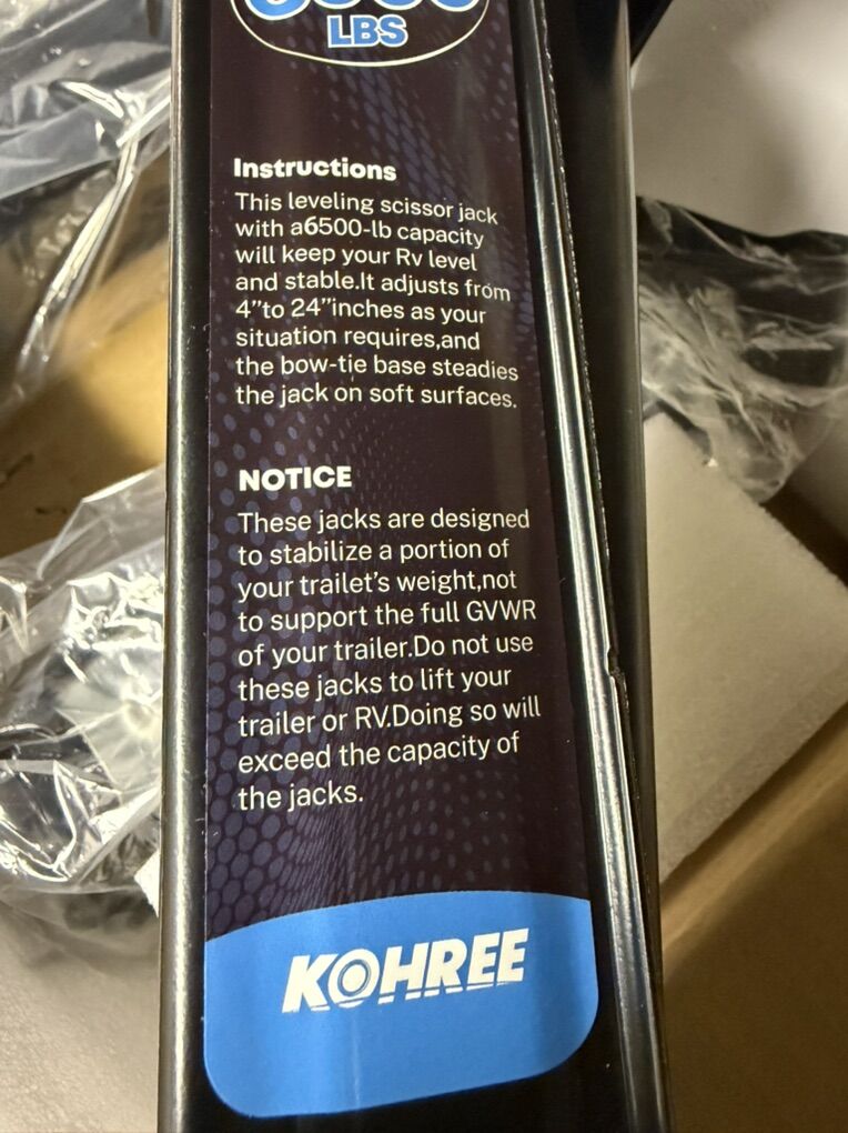 These jacks are designed to stabilize a portion of your trailet's weight,not to support the full GVWR of your trailer. Do not use these jacks to lift your trailer or RV.Doing so will exceed the capacity of the jacks. This leveling scissor jack with a6500-lb capacity will keep your Rv level and stable.It adjusts from 4to 24 inches as your situation requires,and the bow-tie base steadies the jack on soft surfaces.