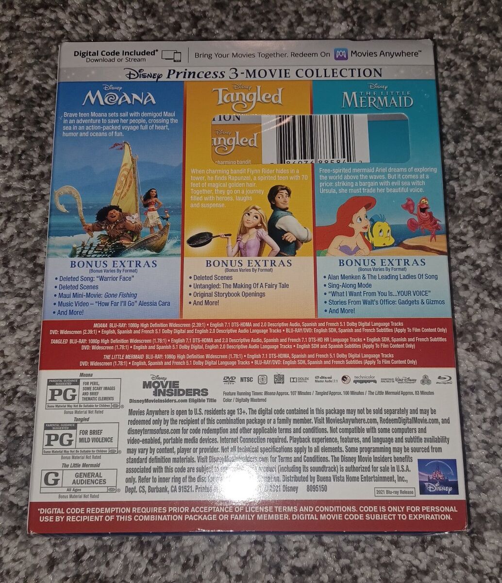 VenmoDisney Princess 3 Movie Collection Blu-ray DVD and Digital Copy. Moana, Tangled, and Little Mermaid.