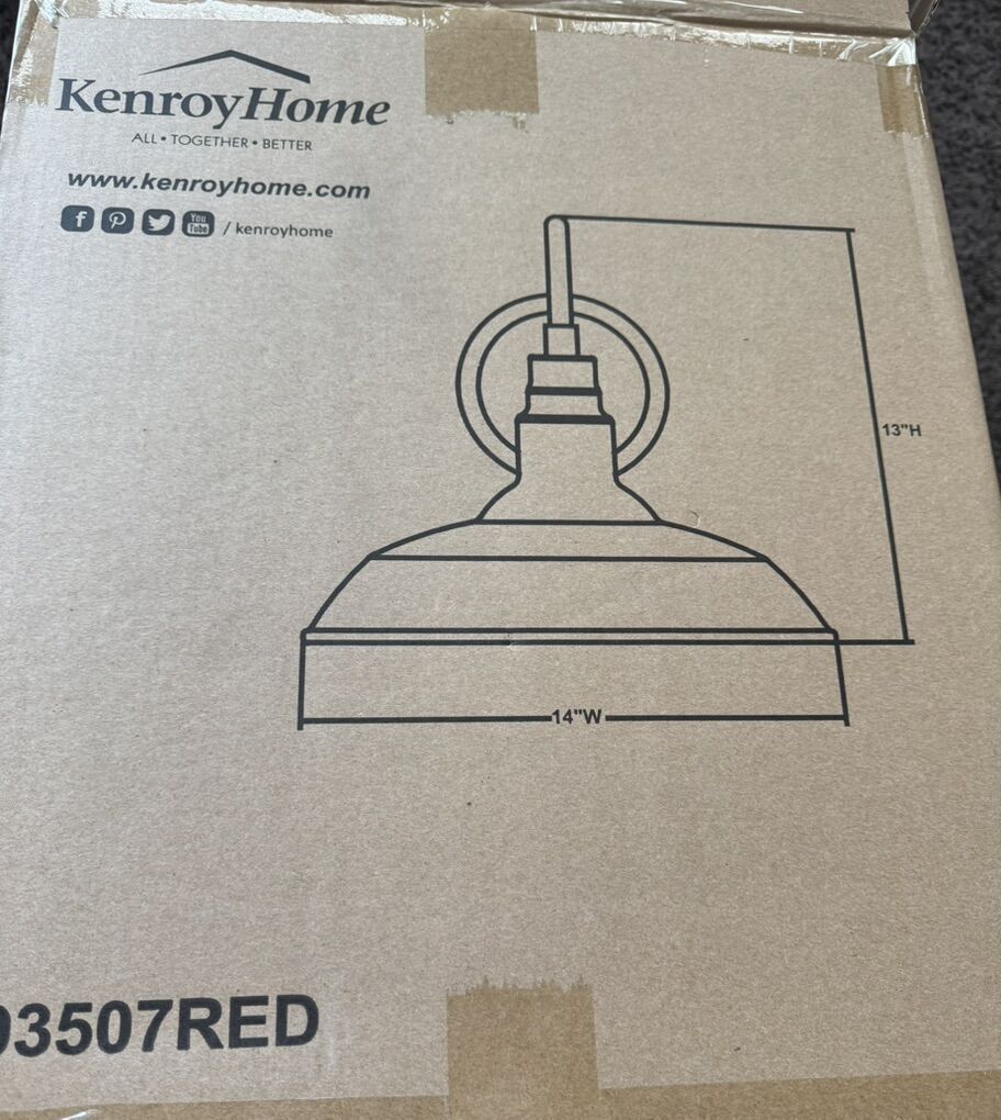 NEW Vintage Wall Lamp: Sconce with red finish and wide barn-style shade adds the perfect industrial rustic accent to your house decor; measures width 14 inches Sconce’s Wall Lighting: Outdoor sconce with an open bottom creates area-filling down lighting for illuminating rooms, vanities, doorways, pathways, bathrooms, hallways, stairwells, and more; requires one 60-watt maximum bulb or an LED/Edison bulb equivalent Rustproof Light Fixture: The lantern lamp is made of powder-coated steel and can withstand rain, winds, and sun year after year we have multiple Check out our other listings for lighting!