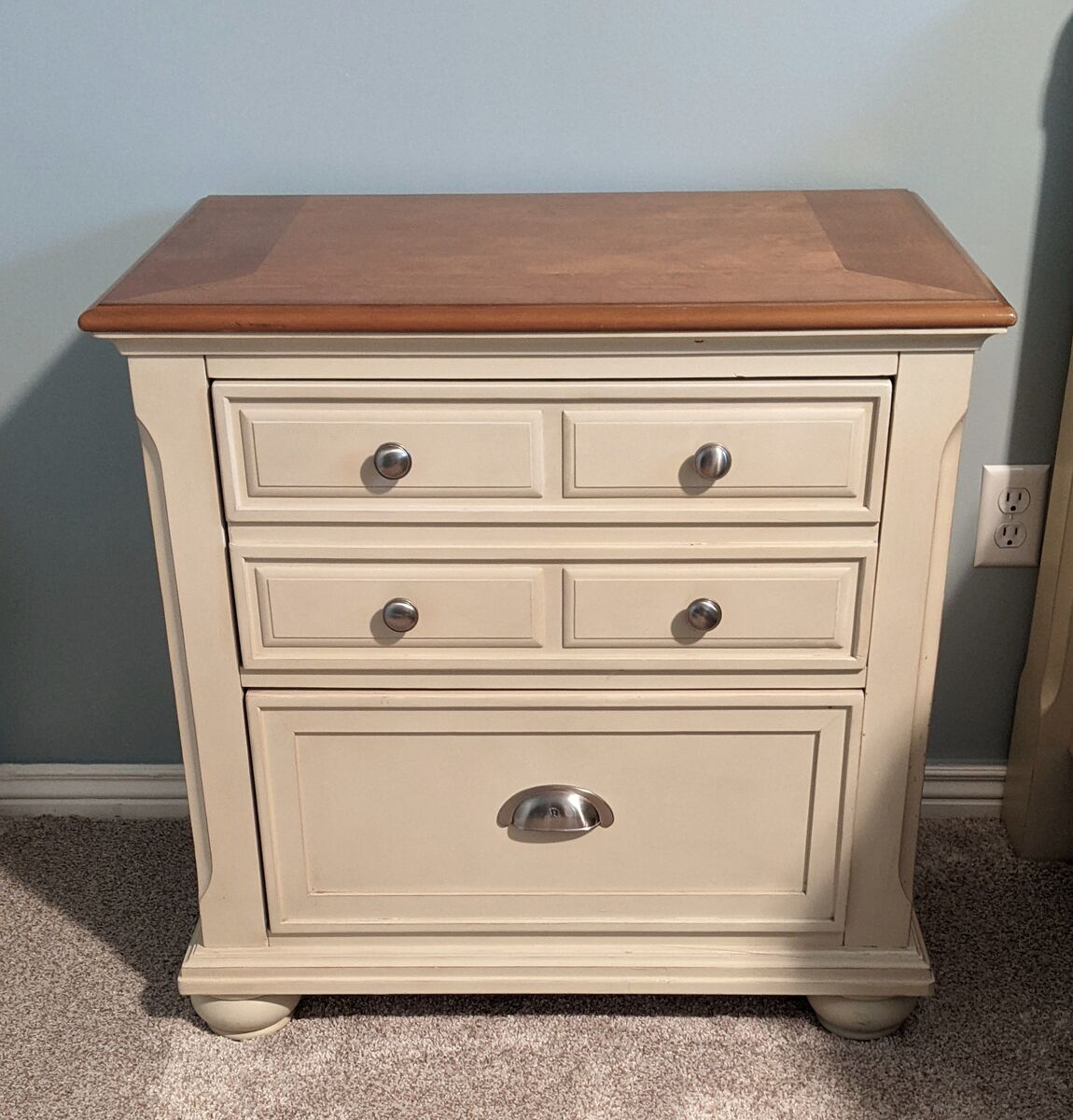 Ashley Furniture Cottage night stand with 2 working drawers. Top drawer has a velvet lining, bottom wood. 28 W x 18 D x 28 H