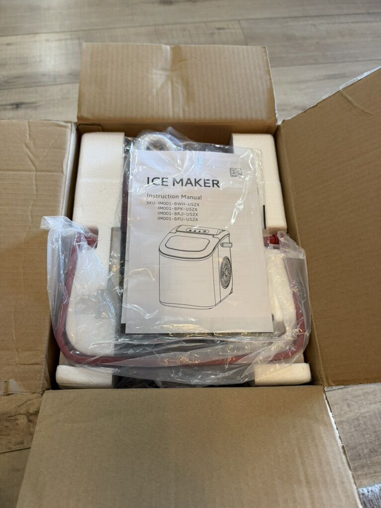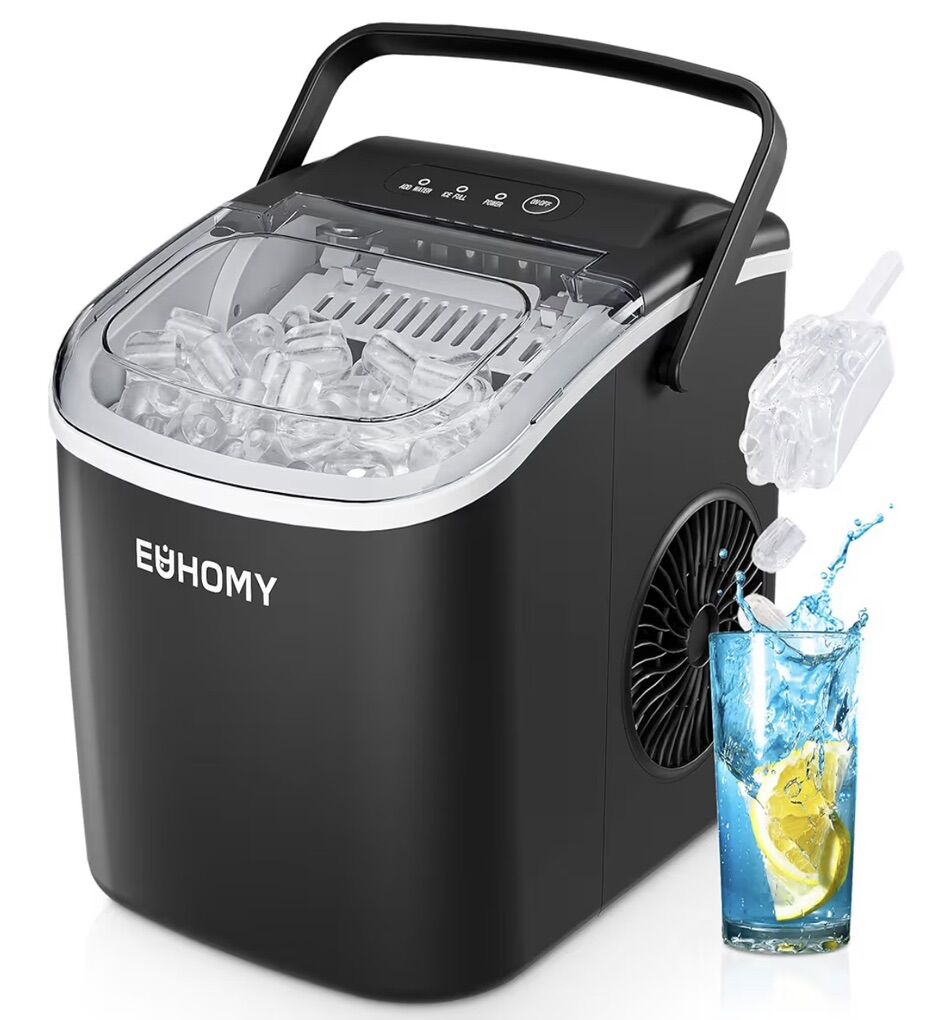 Countertop Ice Maker Machine with Handle, 26.4lbs Per Day, 9 Ice Cubes Ready in 6 Mins, Auto-Cleaning Portable Ice Maker with Basket and Scoop, for Home/Kitchen/Camping/RV (Red)
