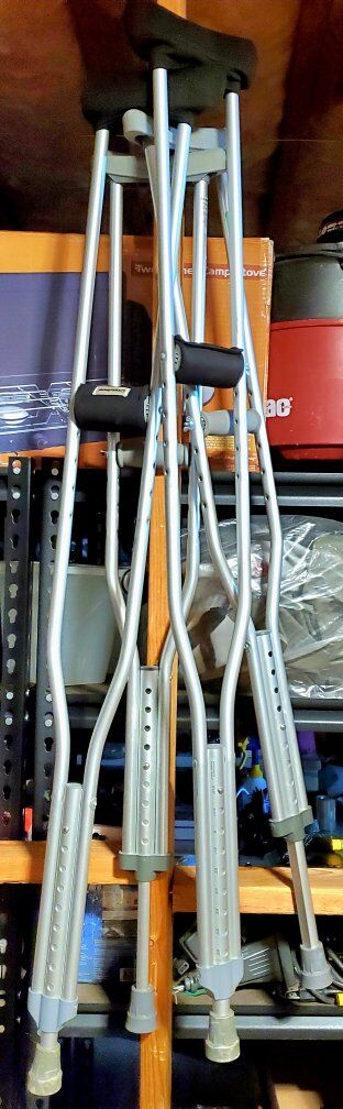 2 pair. 1 pair never used and the other is slightly used. Aluminum structure for light weight. Adjustable height