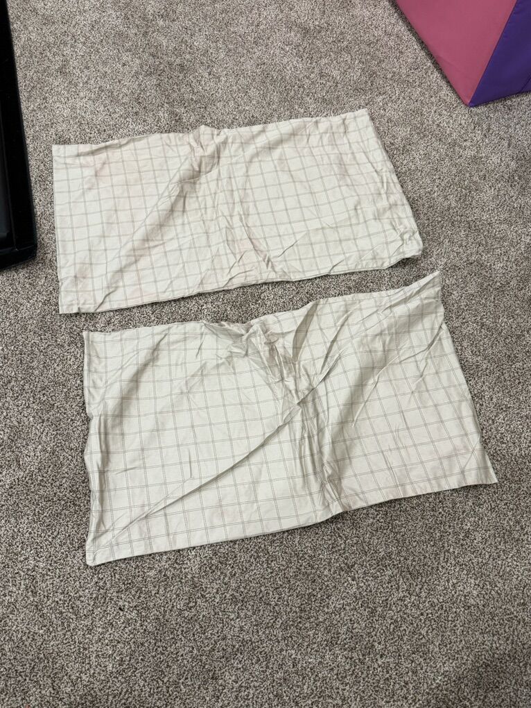 49JAN. Has 2 shams and 2 cases. Cases and sheet areas have faint color bleeding.