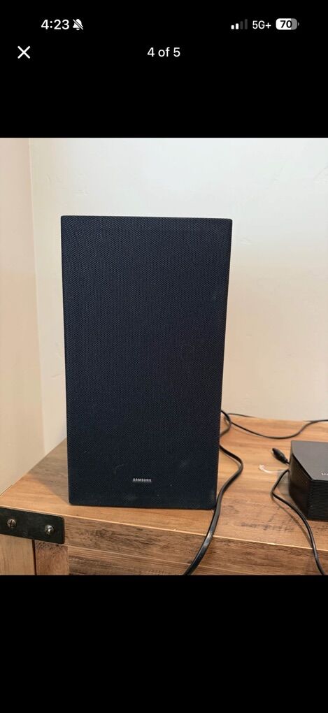 ApplePayI have this like new Samsung soundbar with wireless subwoofer model hw-b73cd. Nothing wrong with it. Features: Dolby Digital 5.1ch & DTS Virtual:X Surround Sound Built-in Center/Side Speakers Enhance Dialogue Subwoofer with Bass Boost - Powerful Boom and Bass Adaptive Sound - Intelligently Optimizes Audio Game Mode - Perfectly Syncs Directional Audio It can be connected via optical, Bluetooth or hdmi.it includes remote control too. Asking 110 I’m located in sandy thanks!