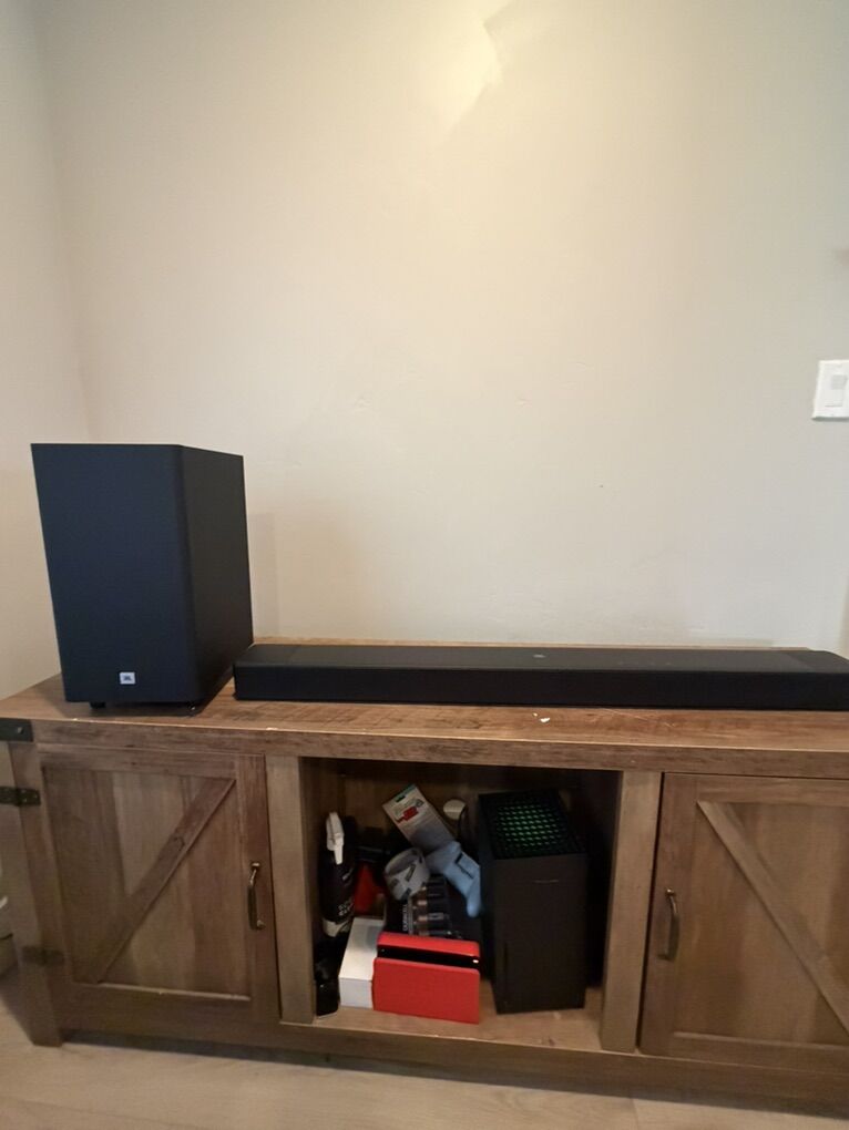ApplePayhave this jbl cinema sb595 soundbar with wireless subwoofer just an awesome soundbar comes with original box True Dolby Atmos® 440W of Powerful JBL Sound Wireless Subwoofer for Extra Deep Bass Dedicated Center Channel Driver Provides Superior Voice Clarity Wireless Music Streaming via Bluetooth Asking 170 located in sandy thanks!