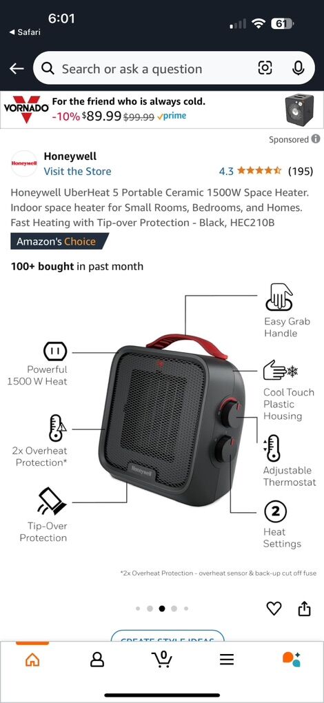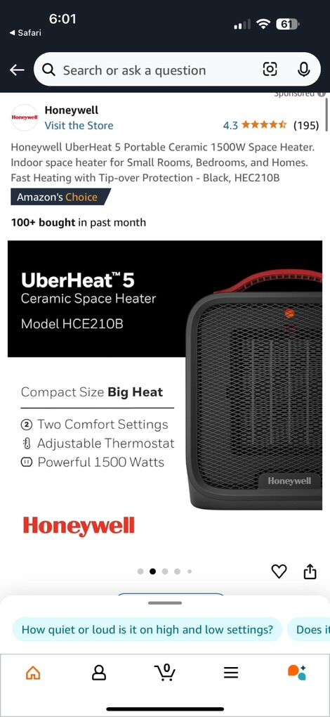 ApplePayI have a couple of these Honeywell space heaters pretty much new works perfectly comes with original box is a 1500 watts and is good for a room 100sq ft to 300 sqft it goes for 43 dollars online asking 25 located in sandy. Thanks!