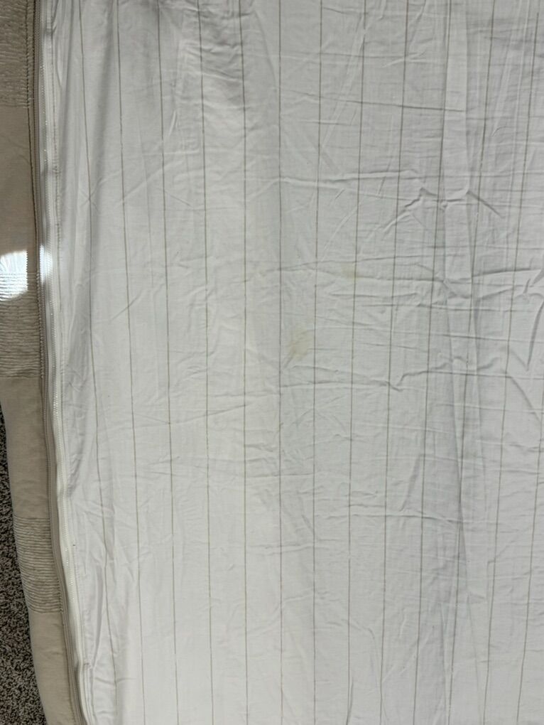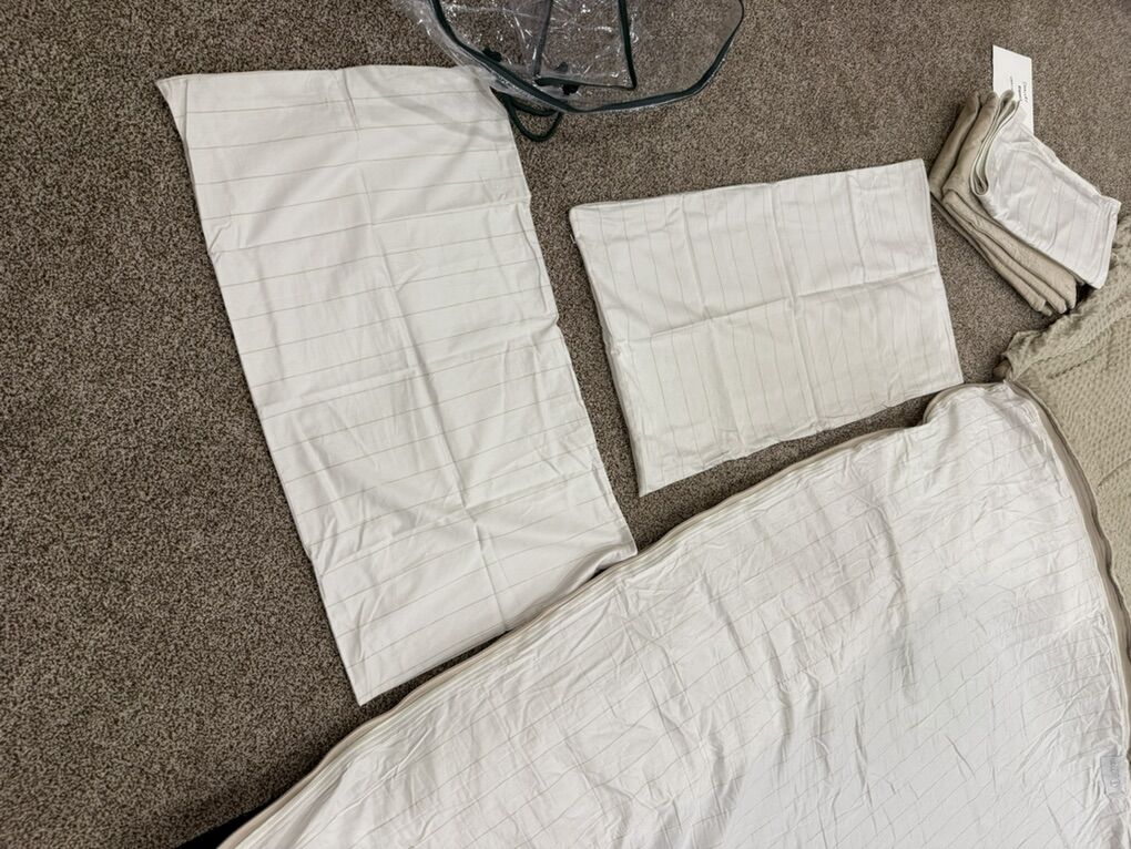 Has 2 shams and 2 sheets and 2 cases. Cases shown minor signs of use, stain area on one of the 2 sheets. JAN59