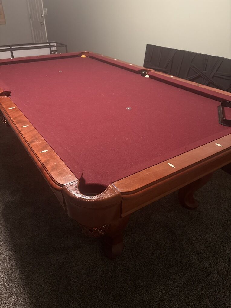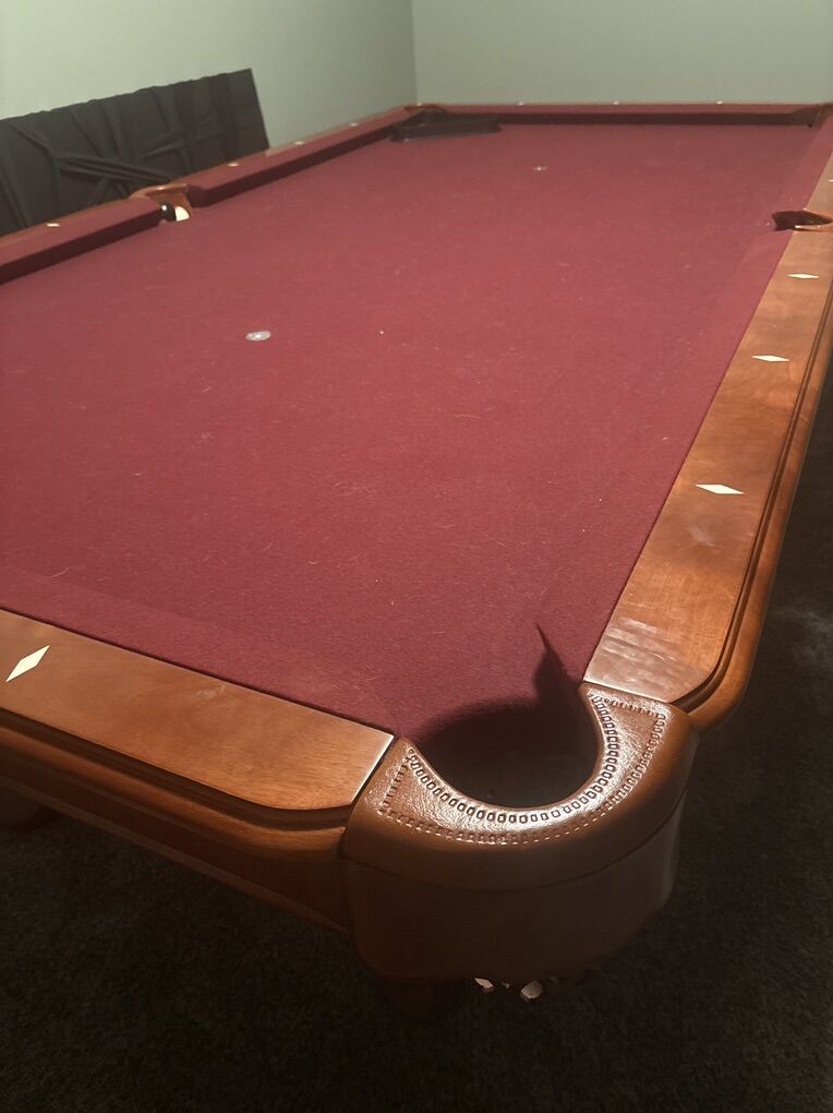 Professional 8’ pool table. This is about 400-500lbs. It will need to have the table dissembled, felt removed, and three slabs of slate removed. Table is about 20 years old but used very lightly. I do not see a model or make on it.