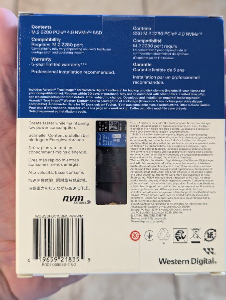 VenmoBrand new sealed. WD Blue 1 TB Gen 4 nvme ssd. Cash or Venmo. Thanks.