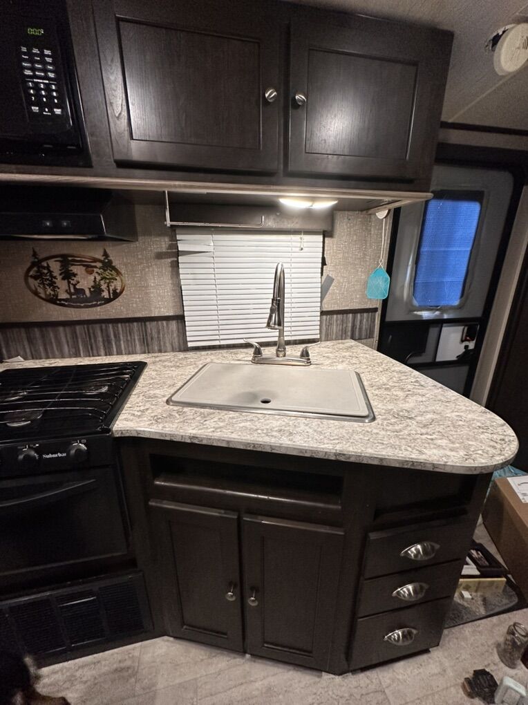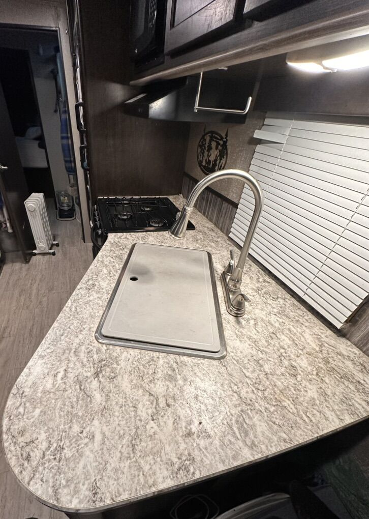 Ultra lite Shadow cruiser 2018 28ft long and about 6500lbs dry Comes with 2 bed rooms and 1.5 bathrooms! Sleeps 6-7 people comfortably Queen size bed and bunk beds 2 slide outs that make a spacious area Winterized Tons of storage Great condition and well maintained (brand new door, AC filters, tires checked, winterized, etc) Full propane tanks Large sink Large awning for the summer Easy to use and understand Comes with solar panels for off grid camping