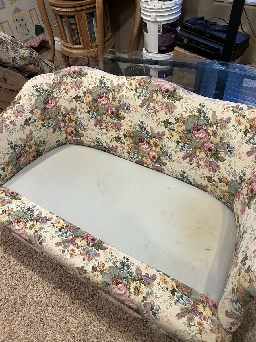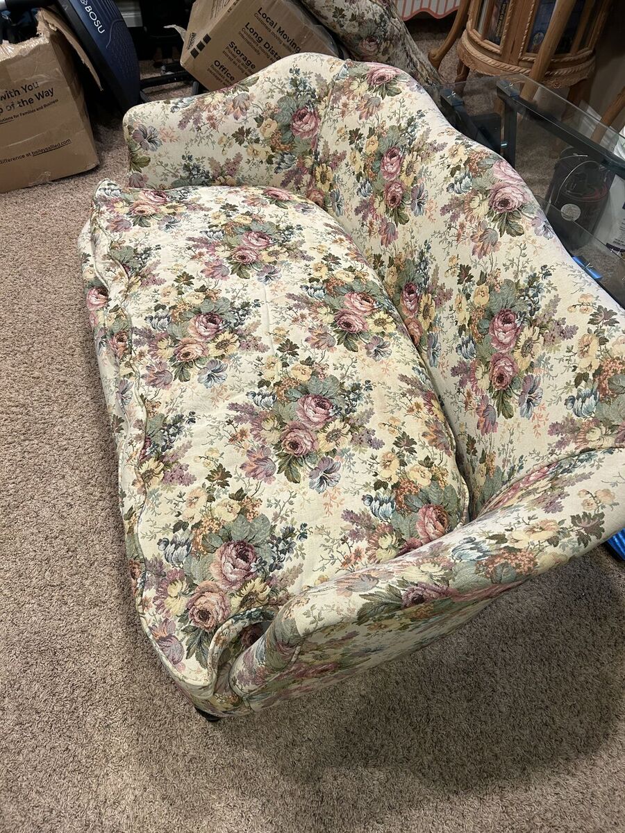 VenmoCoordinating loveseat and matching armchair with a classic floral design. Both pieces are comfortable and have solid, sturdy frames. Cushions are removable. Normal wear consistent with use, but no rips or major damage.