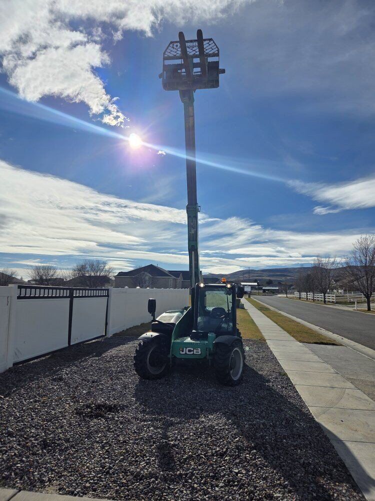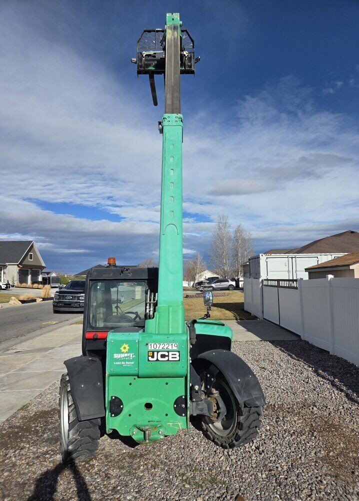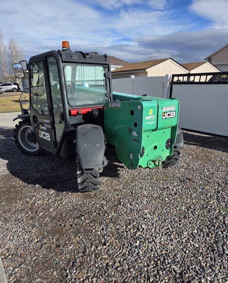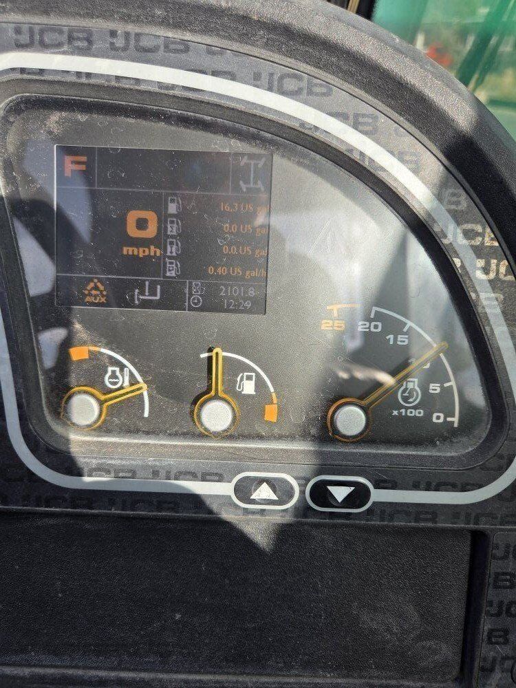 2018 JCB 505-20 Telehandler with 2100 hours. Enclosed Cab, 20 ft Max Lift Height, 5500 lb Max Lift Capacity, 48 in Forks, Manual Coupler, Auxiliary Hydraulic, New Solid tires, AC, heater, horn, wipers, work lights, 4x4, 3 steering options, diesel motor, skid steer face plate.