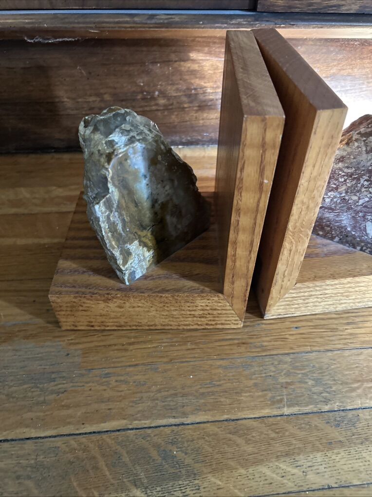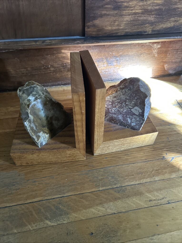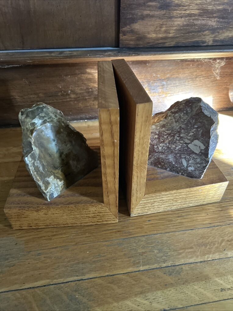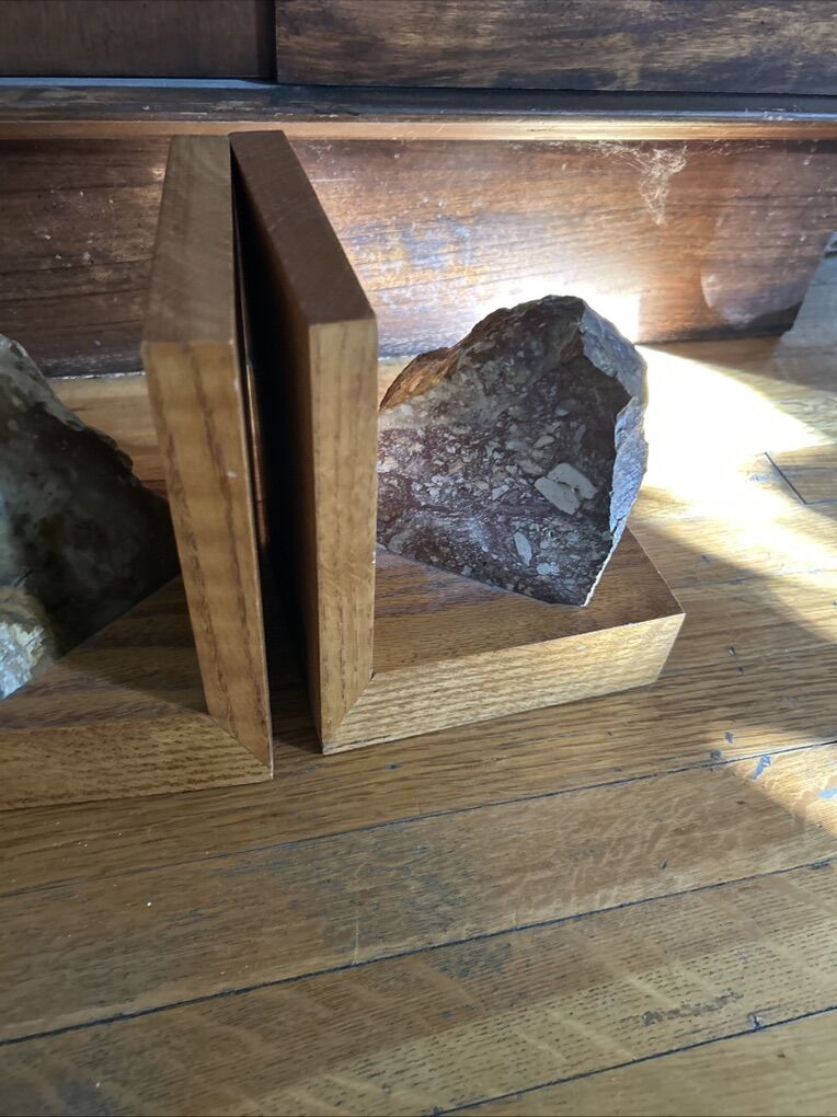 VenmoVintage Handsome Quartz Cluster on Wood Frame Bookend Pair Nice
