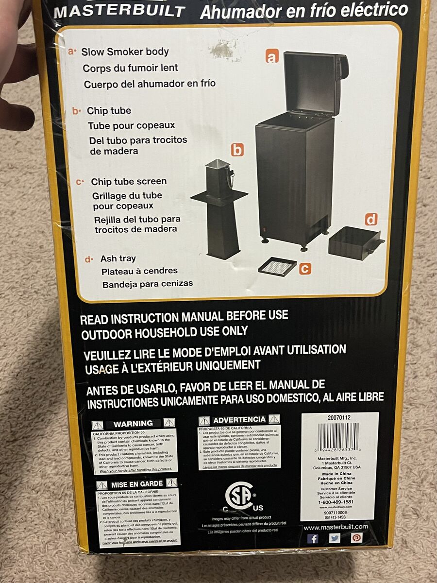 VenmoThe Masterbuilt Slow Smoker Model MB20100112, is ideal for smoking cheese, fish, bacon and jerky, when longer smoke times at lower temperatures are ideal. The Slow Smoker provides continuous smoke for up to 6 hours and is compatible with all Masterbuilt Digital Electric Smokers. Master the art of smoking with Masterbuilt. Removable ash tray for easy cleanup. Measures 10" x 10" x 18" Cash or Venmo Only. $80 obo. New never been out of the box. Accepting cash or venmo only.