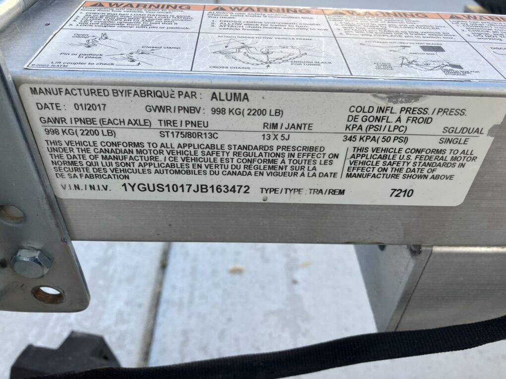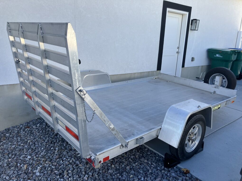 13 inch tires in great shape Aluminum rims LED lights Rear loading gate 2200# torsion axle Includes spare tire