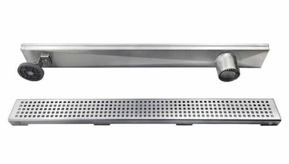 VenmoBrand New Neodrain 36-Inch Offset Side Outlet Linear Shower Drain with Quadrato Pattern Grate Cover Brushed 304 Stainless Steel Rectangle Shower Floor Drain, with Leveling Foot, Hair Strainer Catcher.