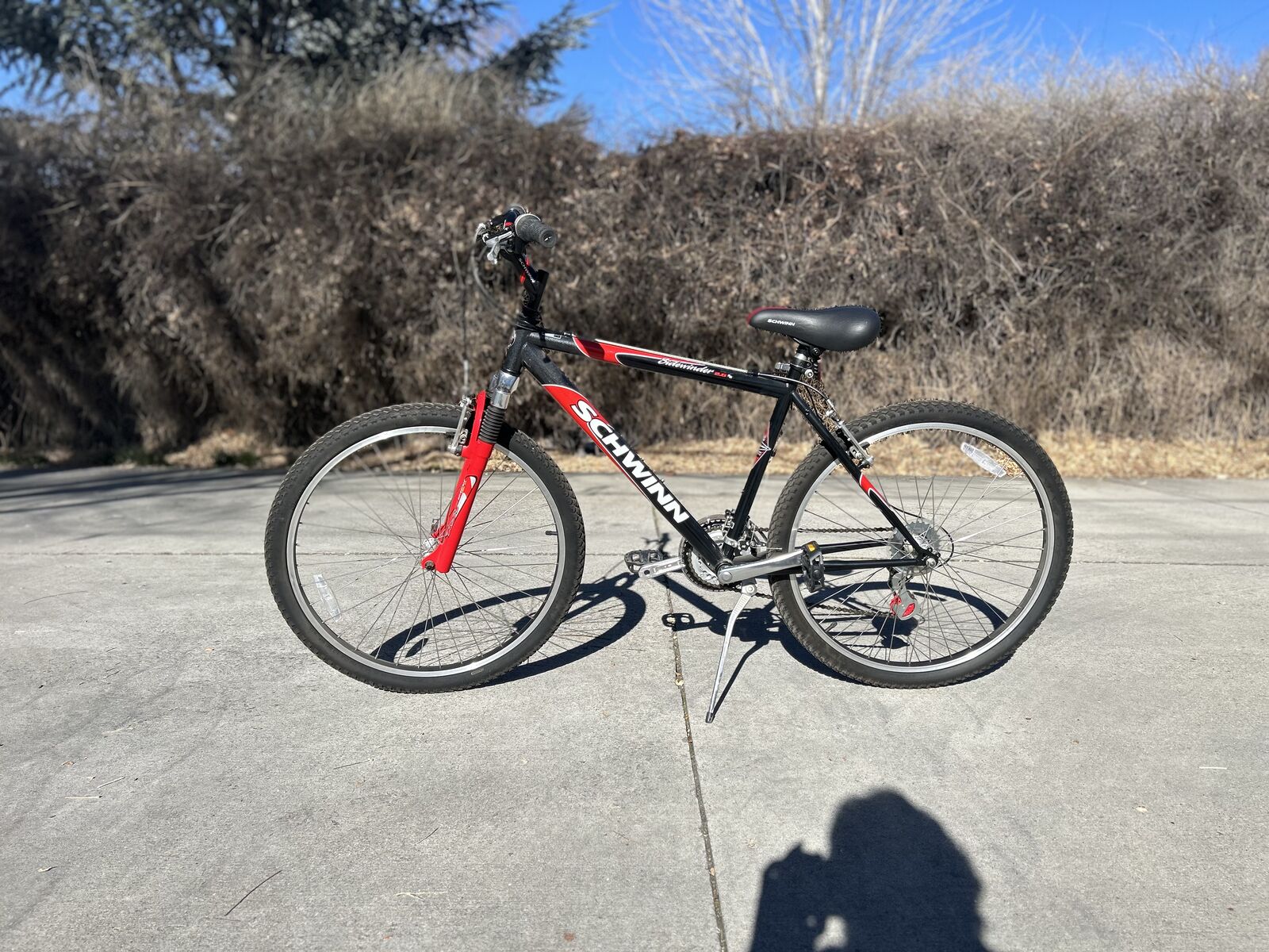 ApplePayMens Schwinn sidewinder bike in excellent condition, has been stored in protected storage. Never exposed to outside weather. Selling because never ride it. Bell helmet included. $90, obo