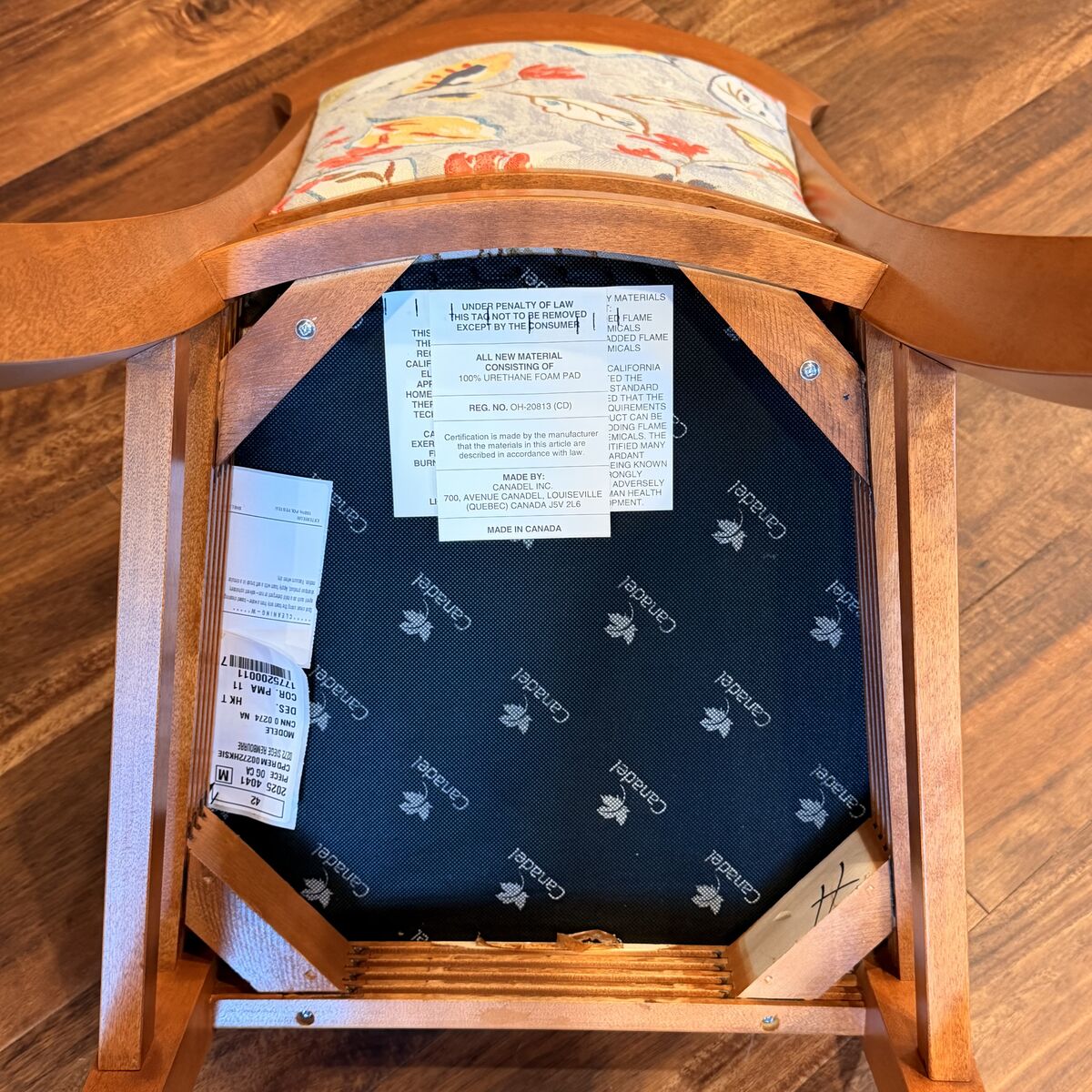 PayPalBrand new! My dad ordered these custom chairs for his recently-built house before he was diagnosed with cancer, and they weren't delivered until after his funeral. Solid wood, made in Canada. Specs: