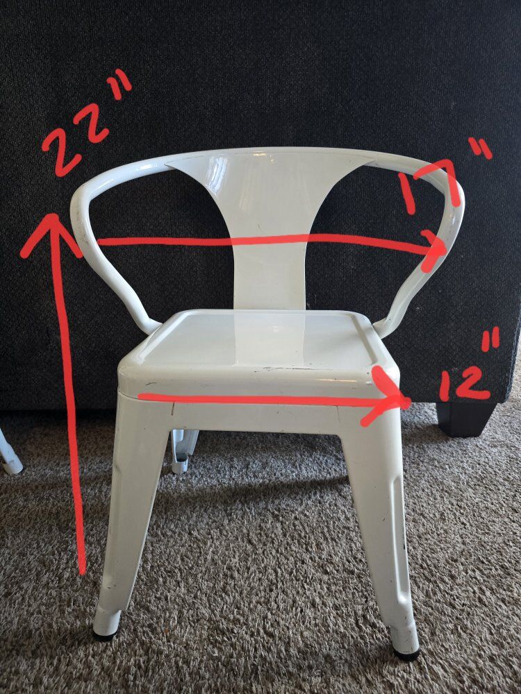 VenmoI have two metal reto style children's chairs in white. Both in good condition with a few minor scuffs. Could also be easily painted. Dimensions are 22" tall x 17" wide at its widest. Asking $20 for both. Cash or venmo only.