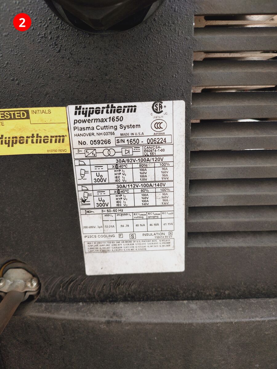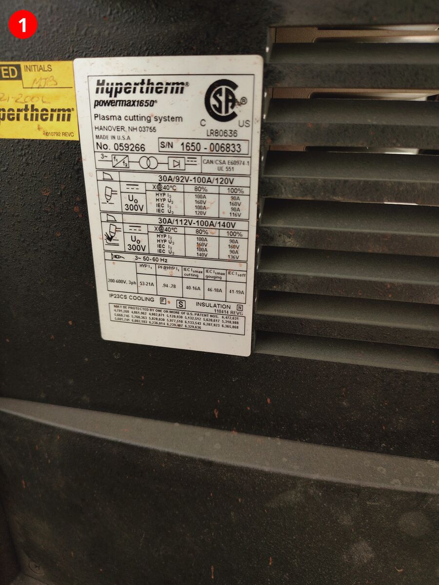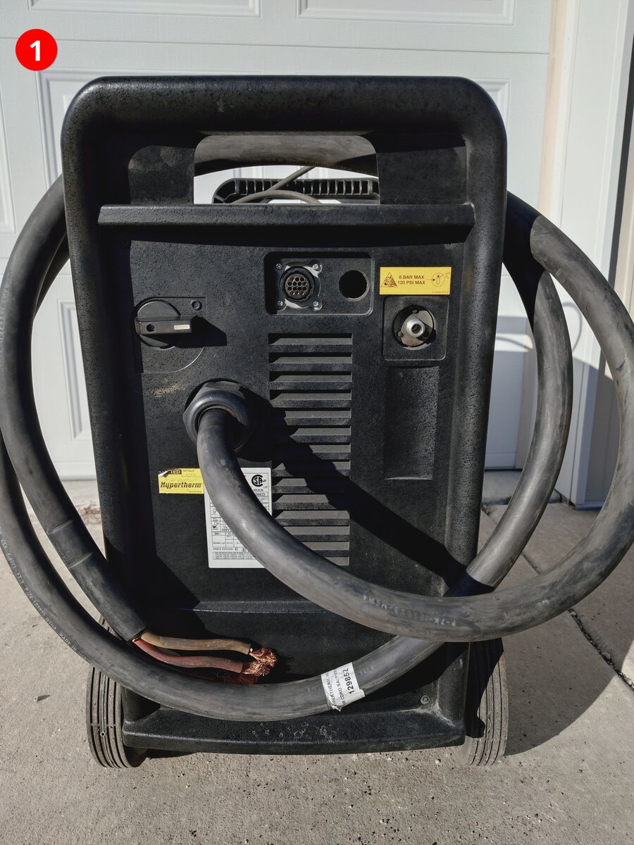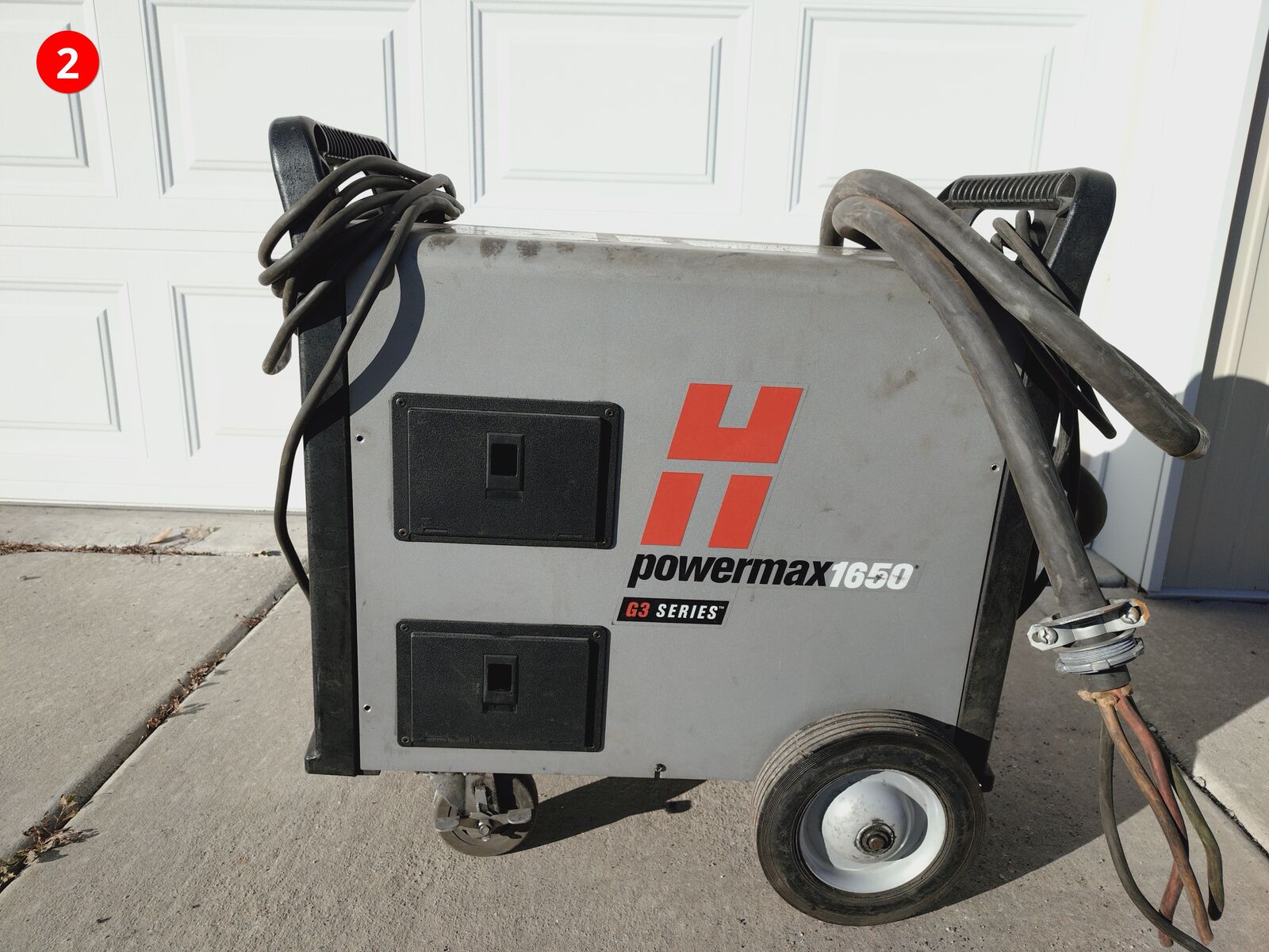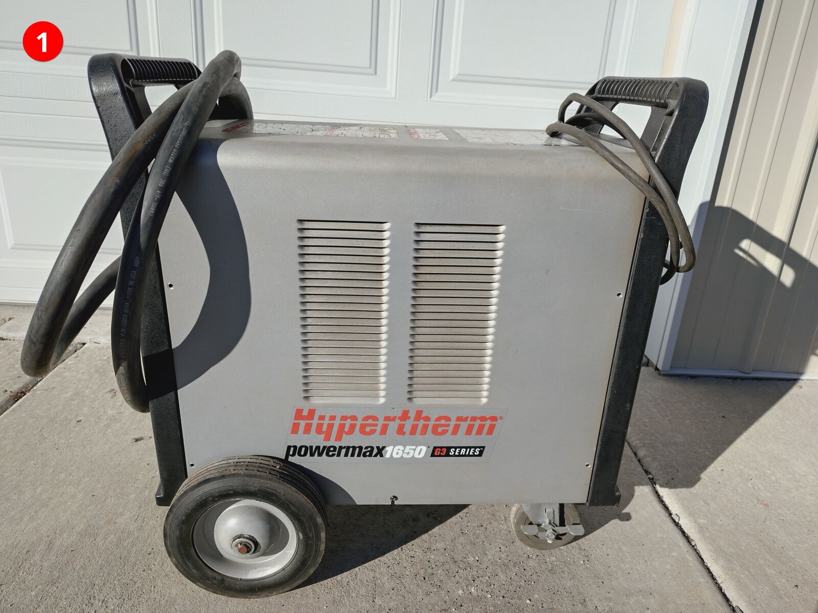 Hypertherm Powermax 1650 G3 Series – 2 Units avalible (No Cutting Leads)Selling two Hypertherm Powermax 1650 G3 Series plasma cutters. Both units power on and functioned properly last time they were installed. Cutting leads/torches are NOT included.Great for CNC tables, fabrication shops, or anyone needing a reliable 100‑amp plasma power supply. Price$1,300 each (Open to reasonable offers) OR (Will consider trades for TIG Welder of similar value) New cuttings leads/torches can be found for these units along with parts. Leads range between $200-$650 based on where and what you want. https://ebay.us/m/1EQBQt (one here for $400) Condition Both units are known to work No cutting leads included Work cables included but will need a clamp or lug. one unit has the extra control wires (wires only) Cosmetically in good used condition Specs (from Hypertherm) Electrical Input- 200–600V, 3‑phase, 50/60 Hz Input current @ 16 kW: 200V – 53A 208V – 51A 230V – 46A 240V – 44A 400V – 27A 480V – 22A 600V – 21A Output- 30–100A output range Rated output voltage: 160 VDC Duty cycle @ 40°C: 60% @ 200–208V 70% @ 230–240V 80% @ 400–600V 100% duty cycle output: 80A @ 200–208V 85A @ 230–240V 90A @ 400–600V Air Requirements- Clean, dry air or nitrogen 9.2 CFM @ 90 PSI Physical- Dimensions: 26.4”D × 16.8”W × 25.8”H Weight: 135 lbs Cutting Capability (with proper torch)- Up to 1.5” (38 mm) recommended cut Up to 1.75” (44 mm) severance What’s Included- 1× Powermax 1650 G3 power supplies Work cables no connectors No cutting torches/leads