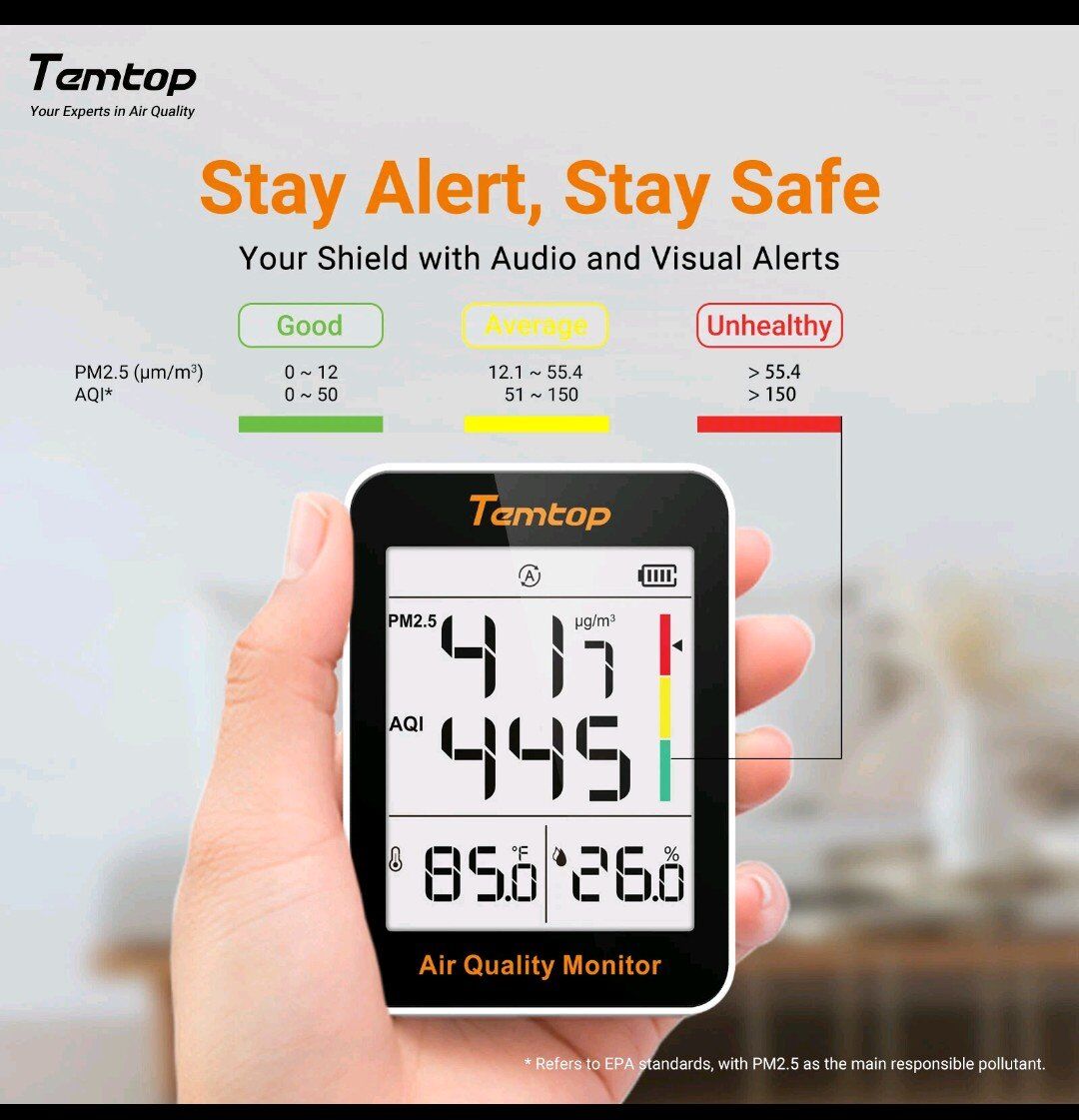 Temtop S1-UP Air Quality Monitor Portable AQI PM2.5 Temperature Humidity Detect