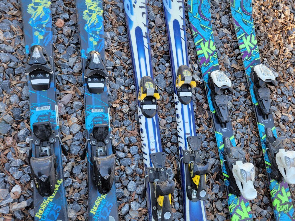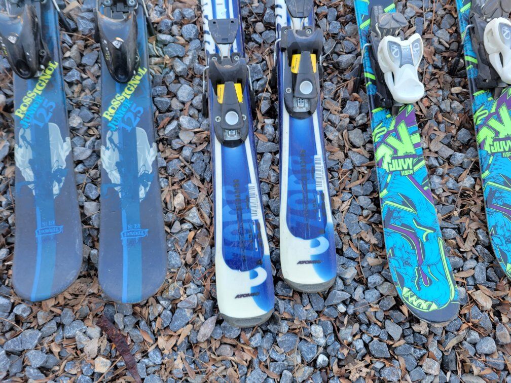 ********** On the left: Rossignol jr 125cm twin tip skis with adjustable bindings.