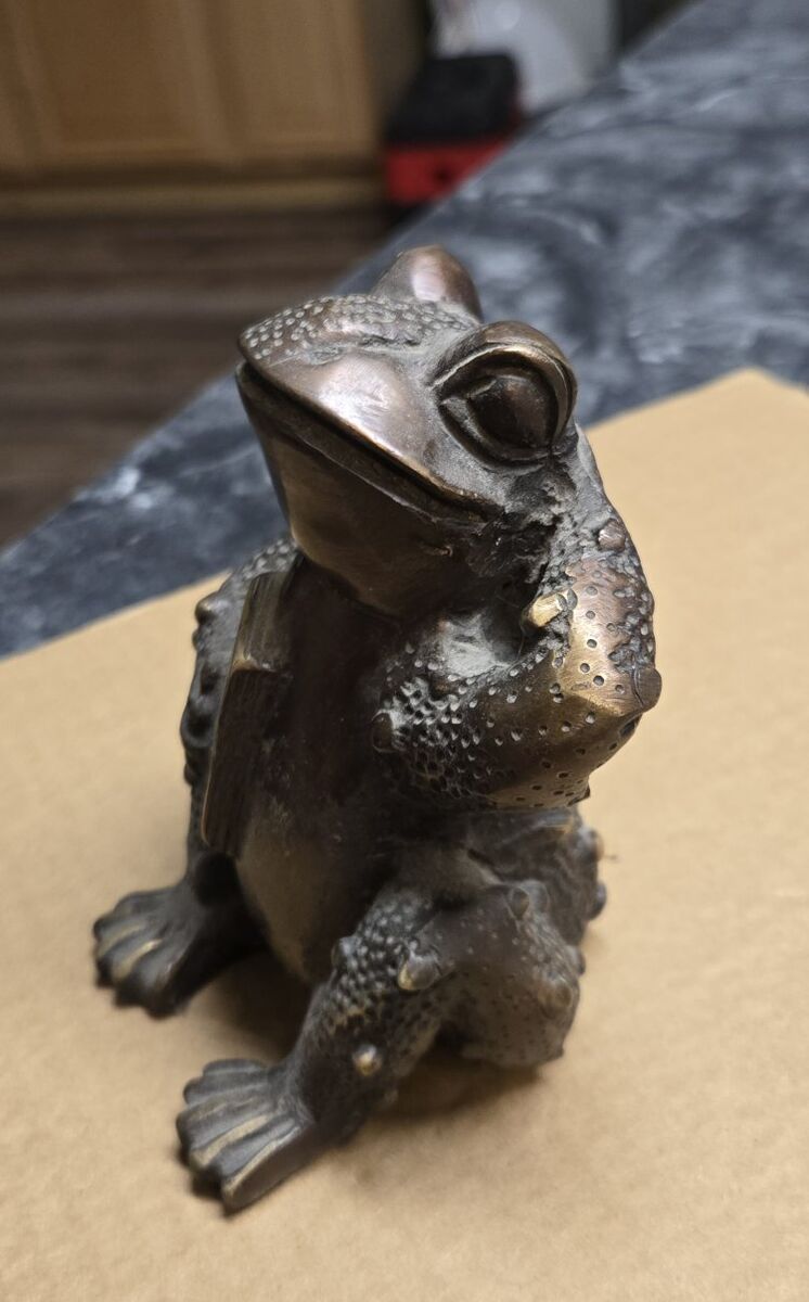 PayPalThis is a Vintage Heavy Brass Frog with book figurine. Stands 5 inches tall. Picked up in Taylorsville. Thank you.