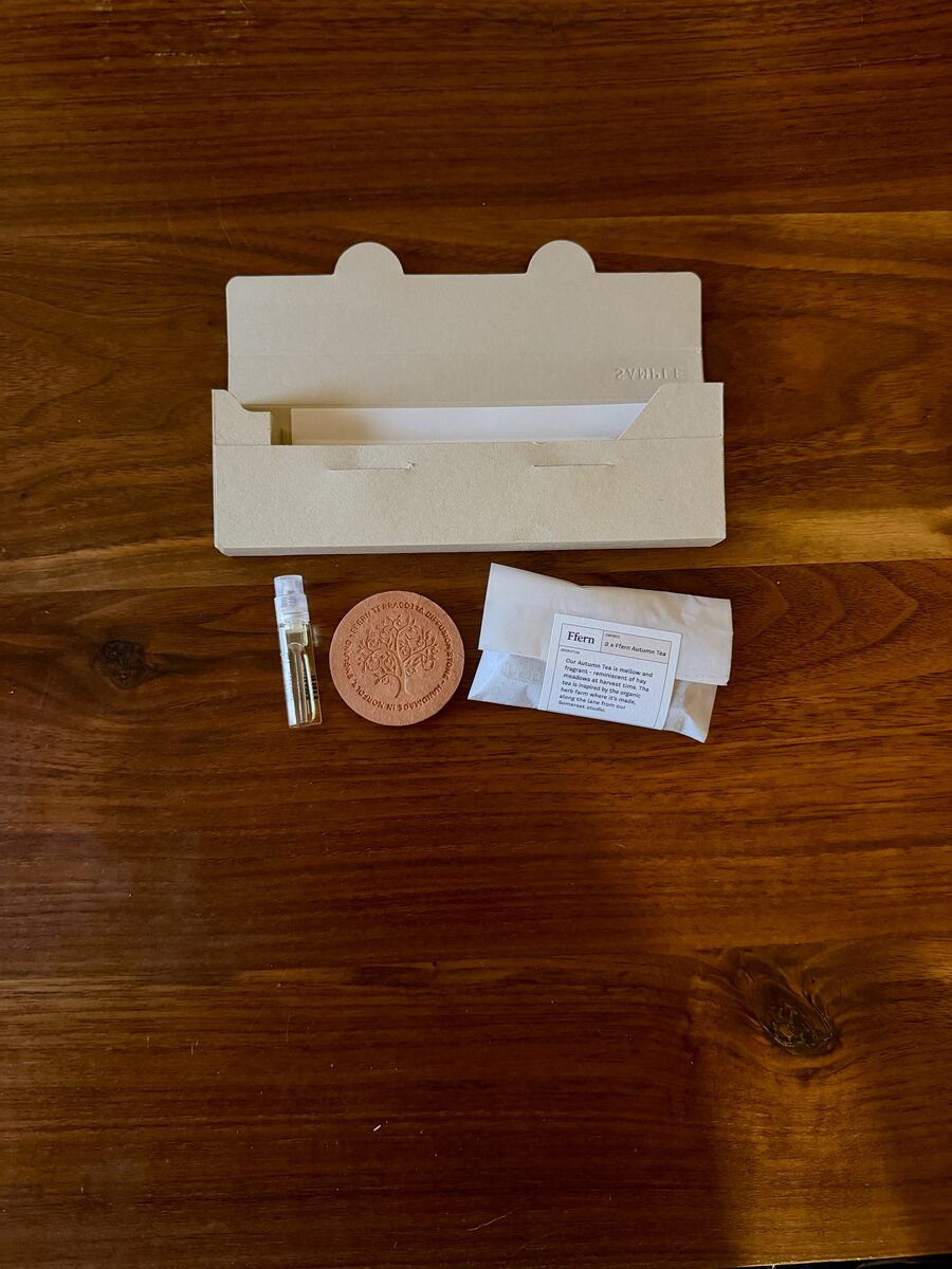 VenmoFfern Autumn 2025 Perfume. I received 2 Ffern perfumes and they are beautiful but don’t work on me. Ffern makes beautiful scents so I hope someone out there will love this one! Comes with everything in the box - full bottle (never used), all cards (one unfolds to be a special print, the sample bottle, terra cotta disc, tea, etc.