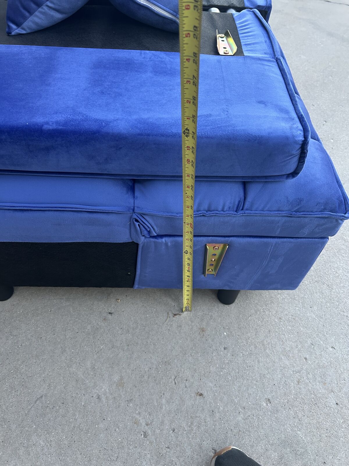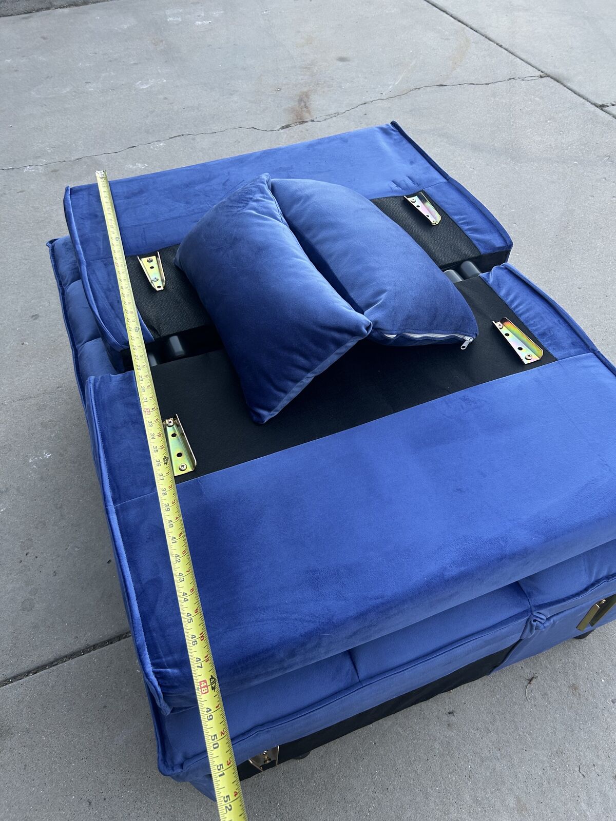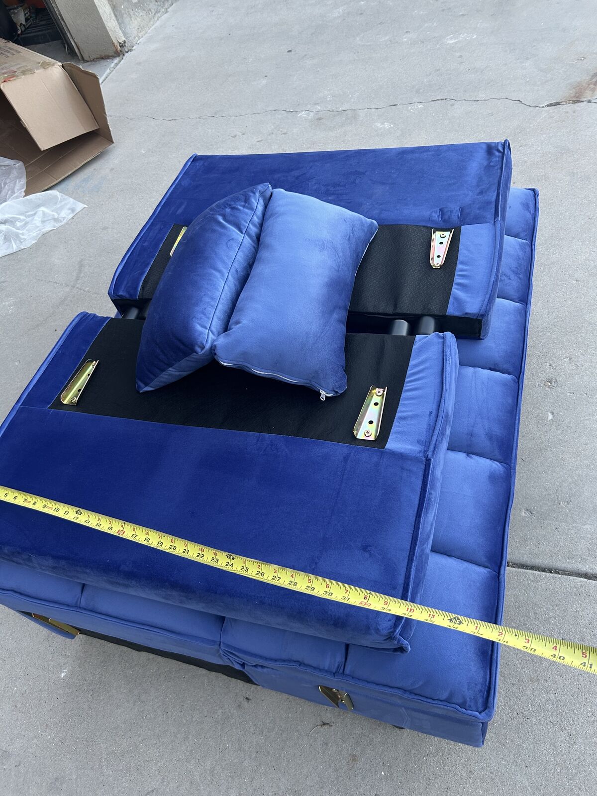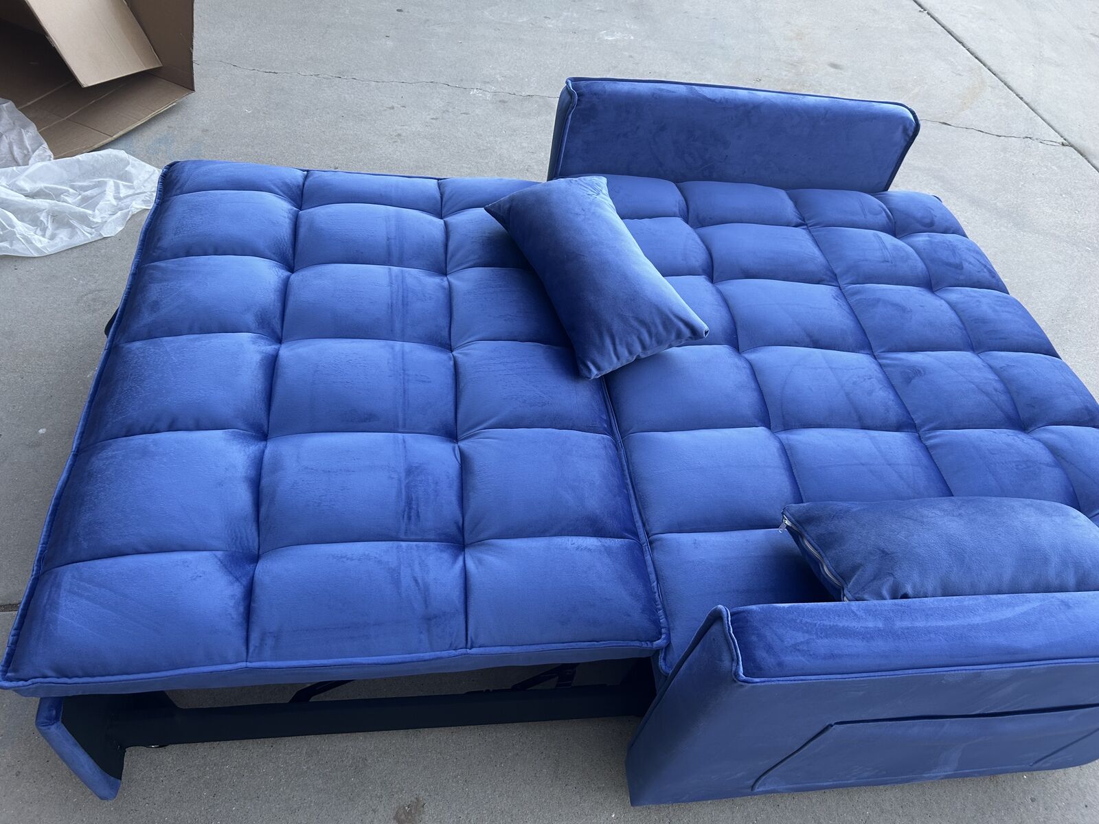 VenmoI have a new blue adjustable couch. Great for a college kid moving out or in a spare game room. Lays flat and arms can come off. Fun little single sized couch. Brand new, never been used. Dimensions are in the pictures. Located in Eagle Mountain and I don't deliver. Thanks.