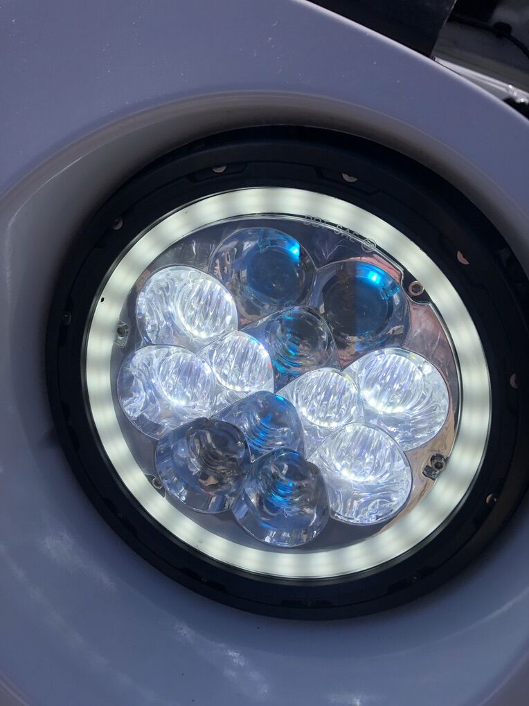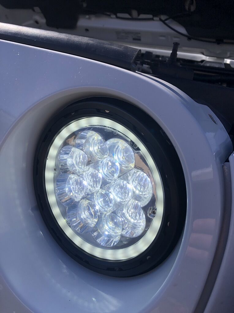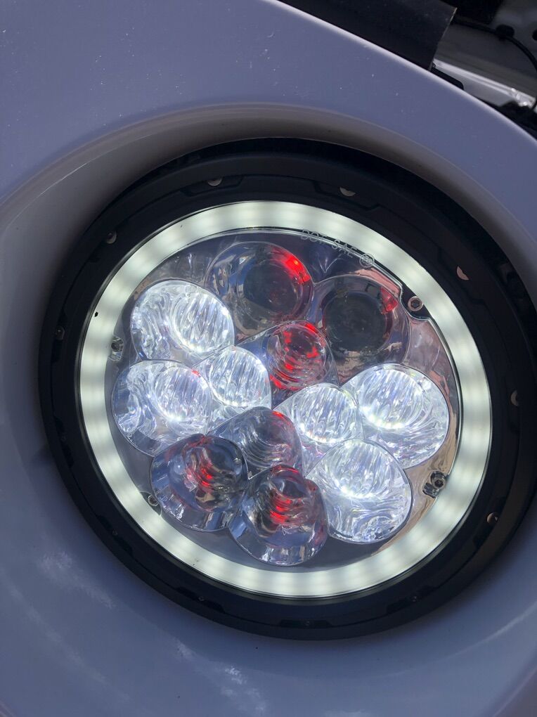 New spider arachnid style with H13 connector adapters. LED 6000K. Your choice if you want to connect the halo and RGB daytime running lamps. These are made by Extreme LED Light Bars. They’ll fit other years and vehicles and motorcycles with 7” lights too.