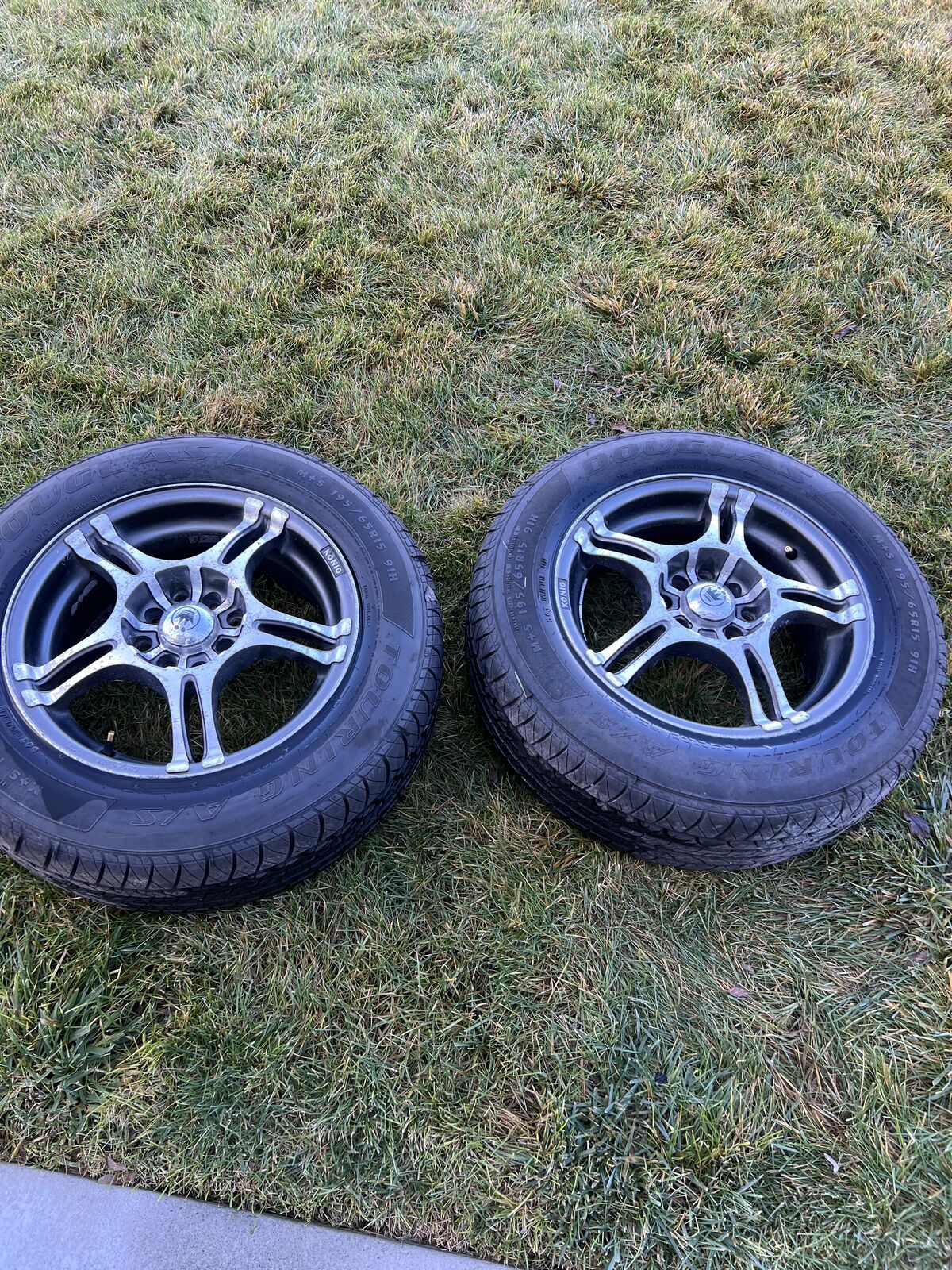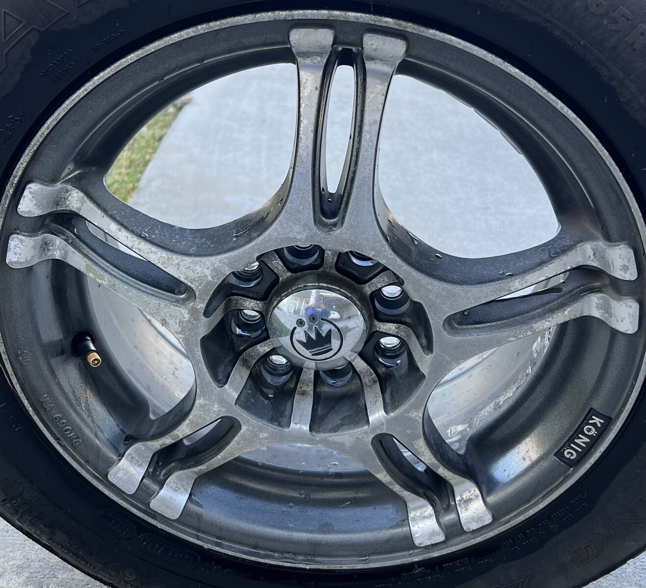 15" and 4x114 for bolt pattern.The lugs are universal Honda accord and civic