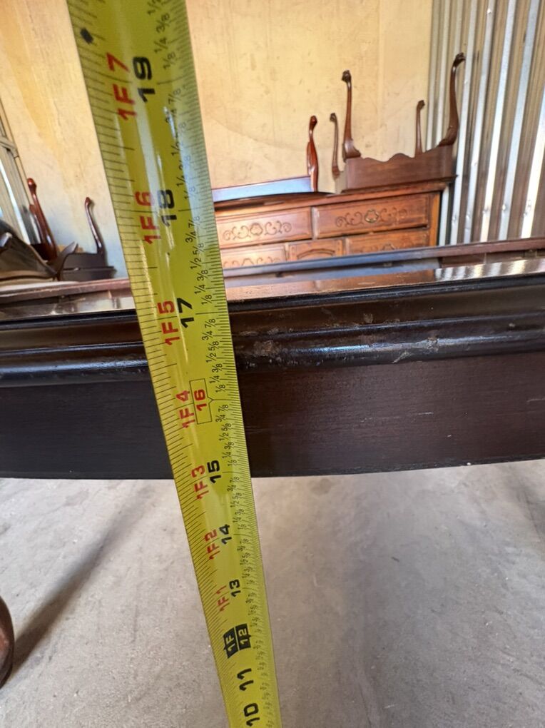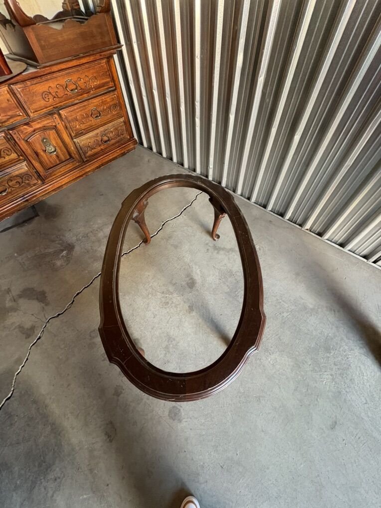 Selling an authentic Ethan Allen oval coffee table frame — solid wood, Queen Anne legs, and great bones for a refinishing or upcycle project. The frame is structurally sturdy, but it needs a new glass top and has surface wear, scratches, and cosmetic marks from age and use. Ideal for someone who loves vintage makeovers or wants a high-quality piece to customize.
