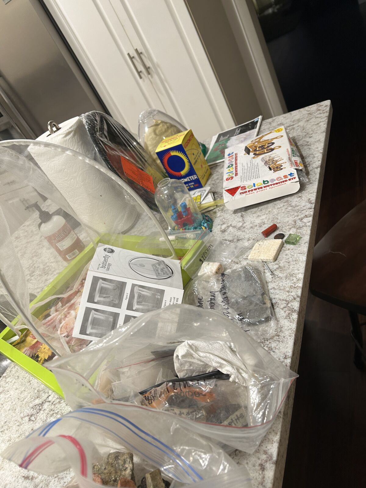 PayPalNew gold panning kiit with gold flakes, ant farm with posters and feeding tube, never used (but opened) solar powered toy, brine shrimp castle, butterfly house and feeding sponges, never used radiometer, rock and mineral kits (some labeled with type, some not), rock scratch test plates, etc.