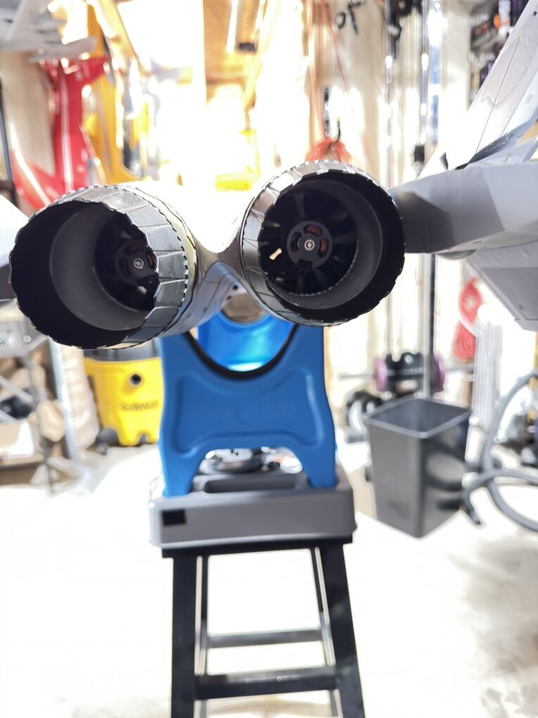 This jet is easier to fly compared to other large EDF jets. Thanks to its canard design, it handles low speeds and landings very well. But when flying at higher angles, it creates more drag, so smooth landings need good throttle control. It also has moving twin vertical stabilizers, so don’t use too much rudder mid-flight or it could cause wobbling (Dutch Roll)