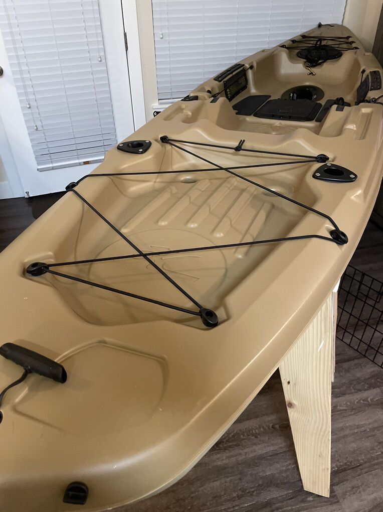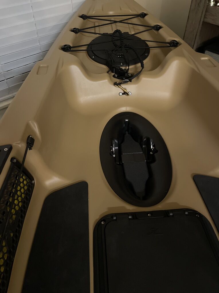 VenmoI bought this Hobie Passport 12 brand new in 2022. I have used this kayak two times, literally. The kayak is in great shape and has been stored in my climate controlled living room for the past three and a half years. I have made some upgrades to the kayak. It has the upgraded rectangular hatch with basket and the circular hatch has been moved to the front of the kayak. The kayak also has the mirage drive leash kit and storage nets on the sides. I also modified the seat clamps because of the issue with the seat popping out of the clamp. Hobie knows about this design flaw/ issue and has fixed it with the newer version of this kayak. Unfortunately, Hobie did not remedy a fix for this model year so I took matters into my own hands. The modification with the seat clamps can be used in its original form, or with a plate and thumb screws as seen in the pictures so the seat cannot pop out. Please let me know if you have any any questions. Thanks for looking! $1,500 OBO