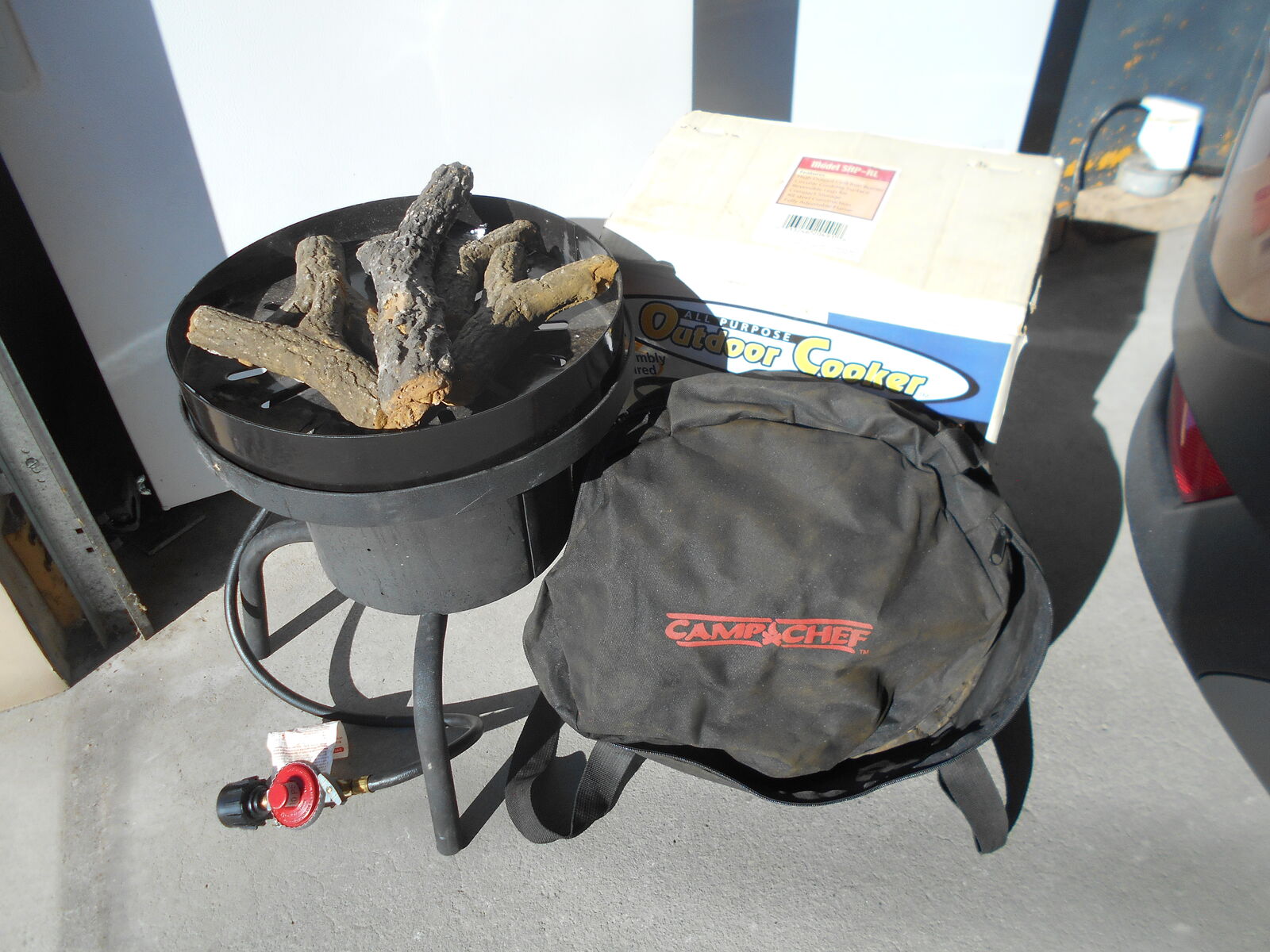 Camp Chef Cooker Single Burner, High Pressure -60,000 BTU. Includes Champ Chef fire pit that sits on top of the burner and a New Outdoor Steel Decorative Fire Pit Ring. Just not using. An awesome deal at just $40 for everything. If no answer please leave a message. 435-279-4417 Thanks Fred