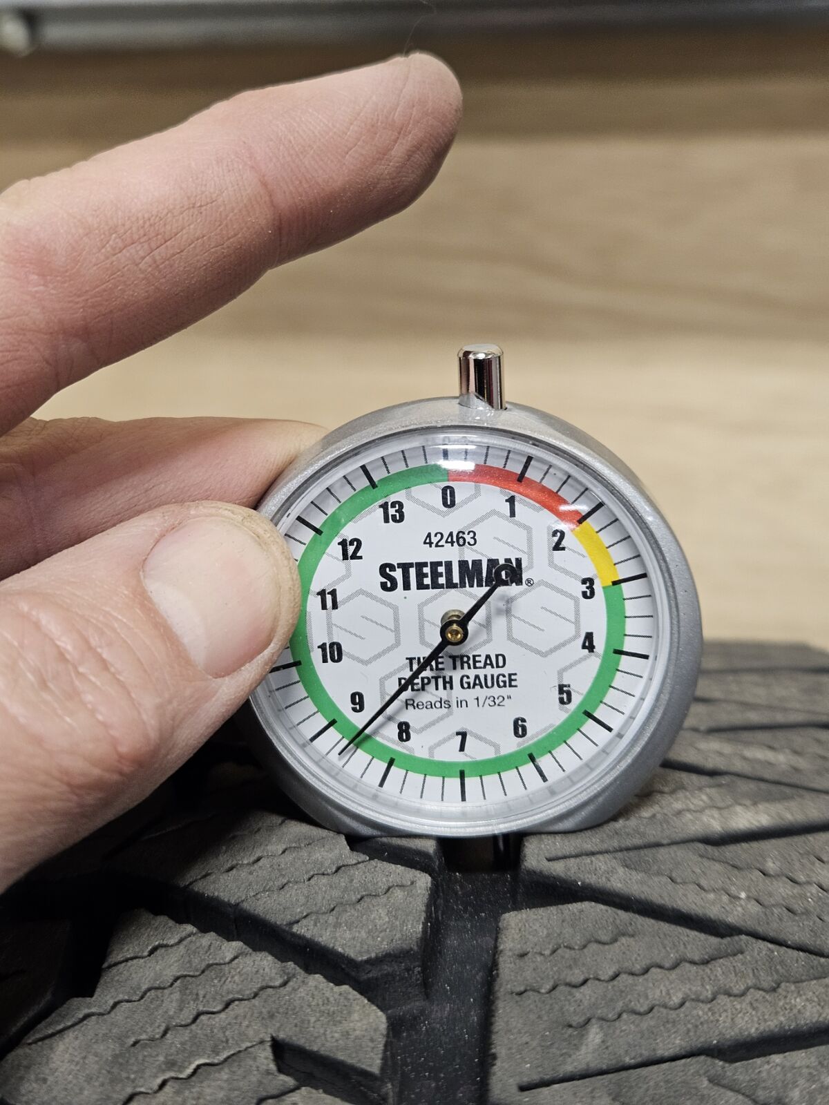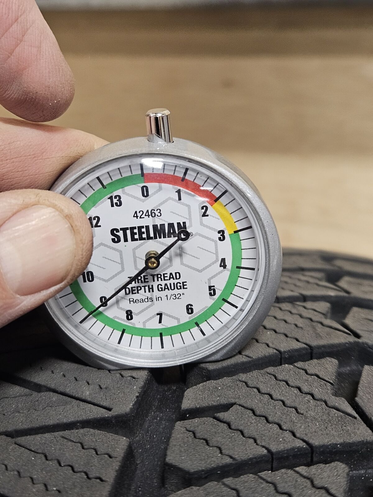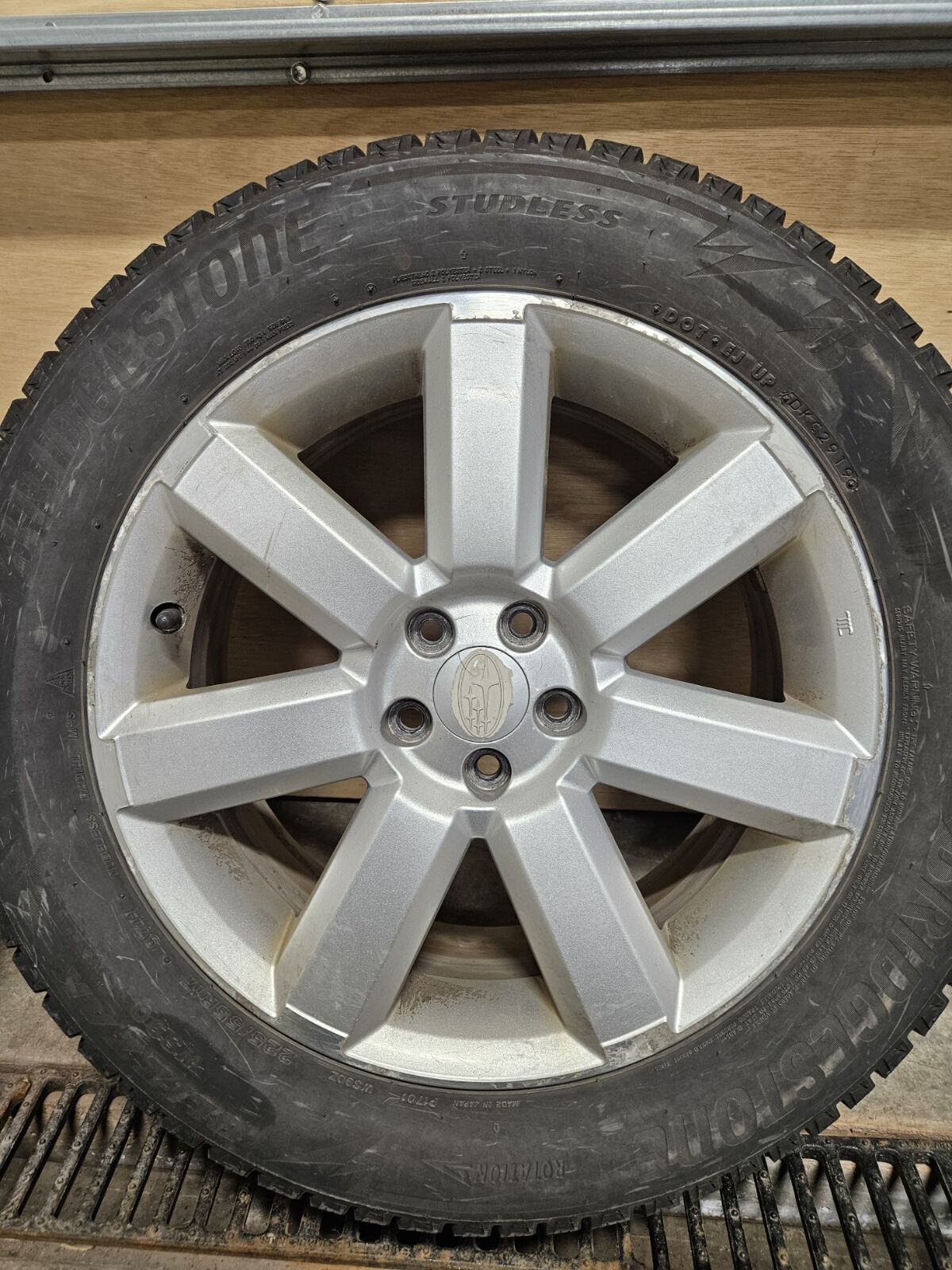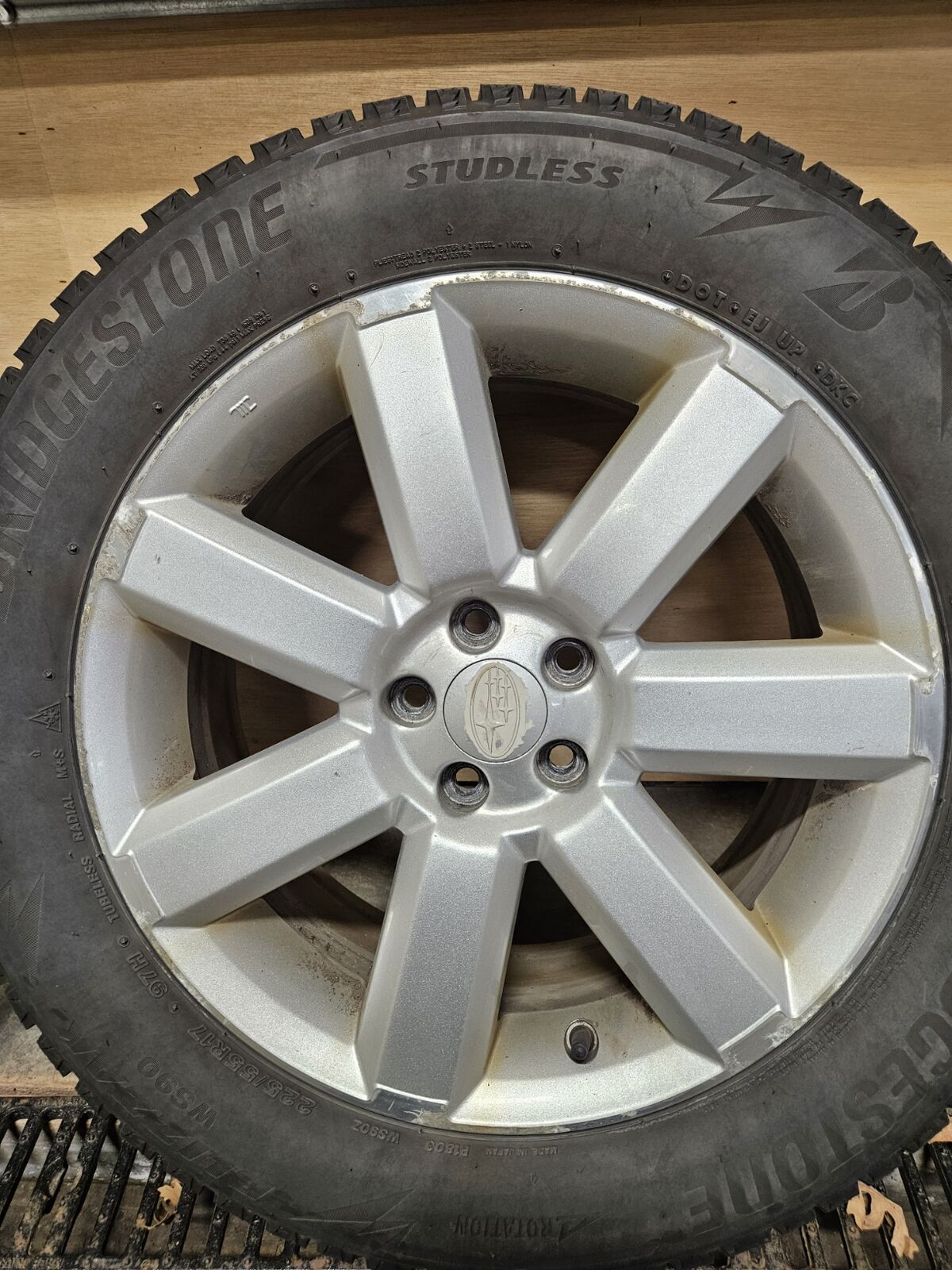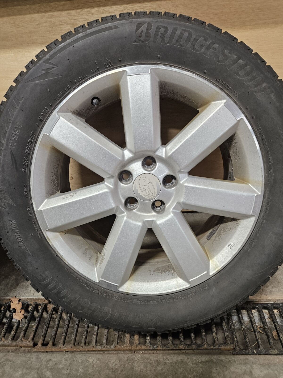 The Bridgestone 225/55R17 Blizzak tires were new on the car last year and only have 1 winter season of driving. All 4 tires have even wear patterns and a tread depth of 8.50/32 to 9/32 of tread left depending on the tire, see pictures. Load index and speed rating 97H.