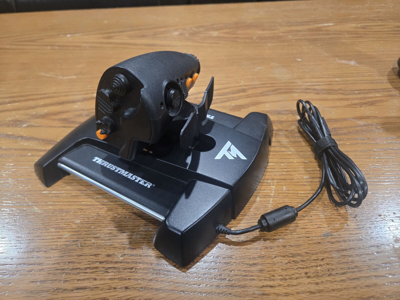 ZelleUsed HOTAS set with included rubber hand rests for the stick to reverse side. All buttons work, throttle and stick twist jump when moving the axis. No box or other accassories included.