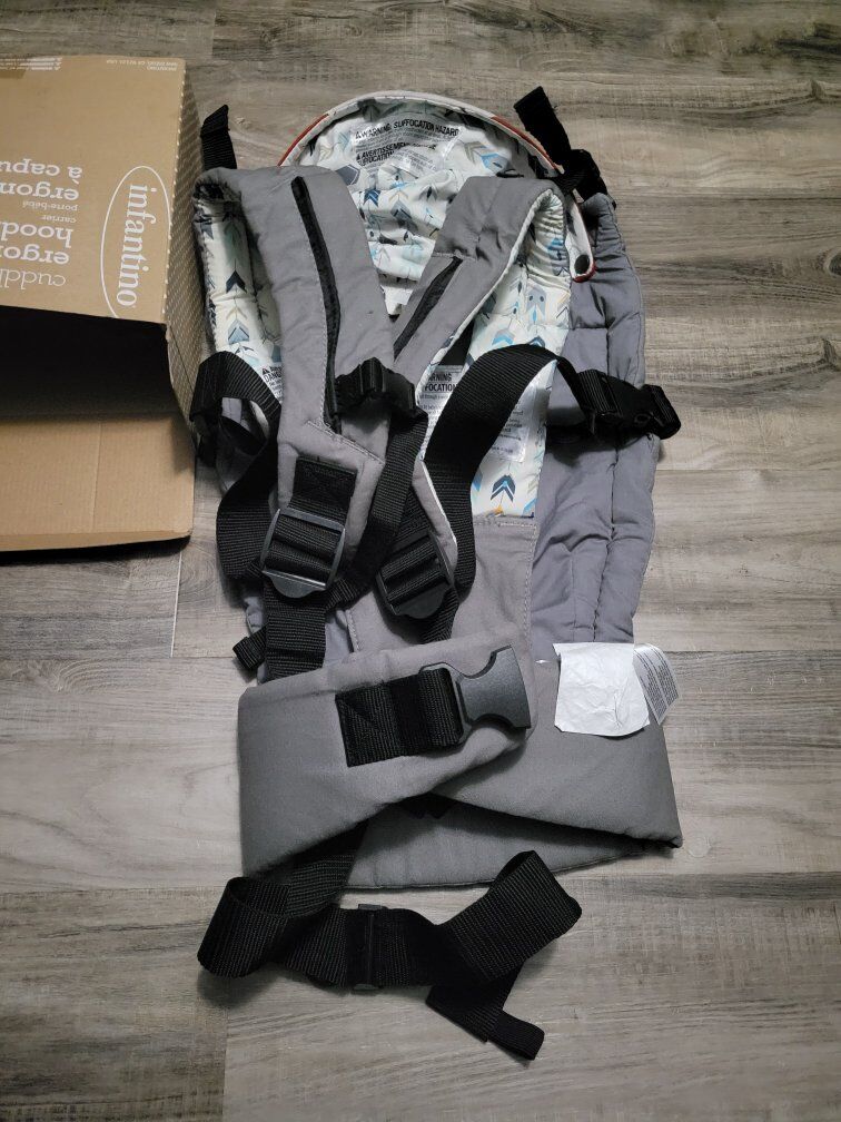 VenmoGood condition. The hood is removable so you can use it as a basic carrier. Recommended baby weight is 12-40lbs. Buckles are adjustable.