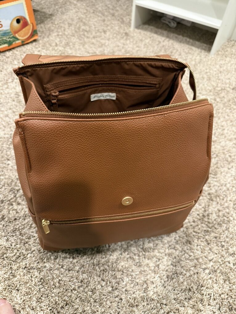 VenmoCognac colored Freshly Picked Diaper backpack - lightly used. Original price $199. Asking $75 - please text 801.842.4349 if interested.