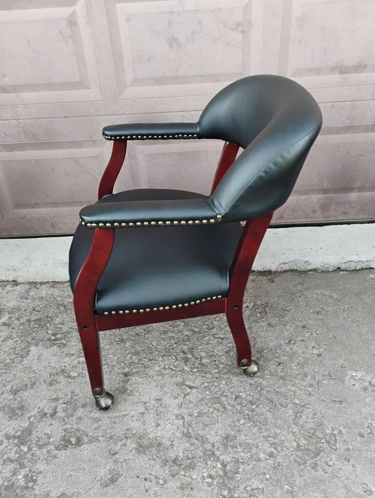 VenmoBeautiful Captains chair, in great condition. No rips or tears in the fabric. Nice brass nailhead trim accents. Great for office, library, study or waiting room. Retail at Amazon and Walmart is $243.