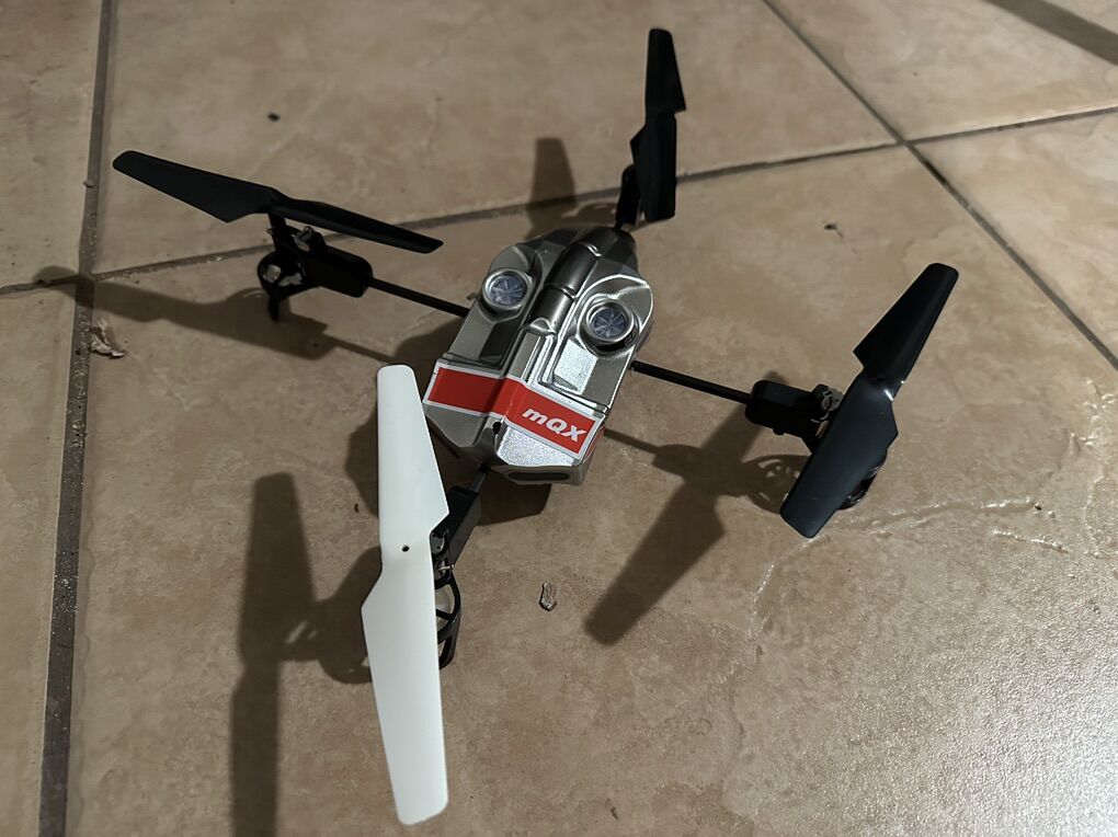 Blade mQX quadcopter basically new, binds to DSM2 or DMSX transmitter this has the safe mode built into it. The is bind and fly no transmitter, battery or charger. This is also set up in the T flying configuration so it’s a little easier to see what way it is going. Cash only no Venmo or digital money