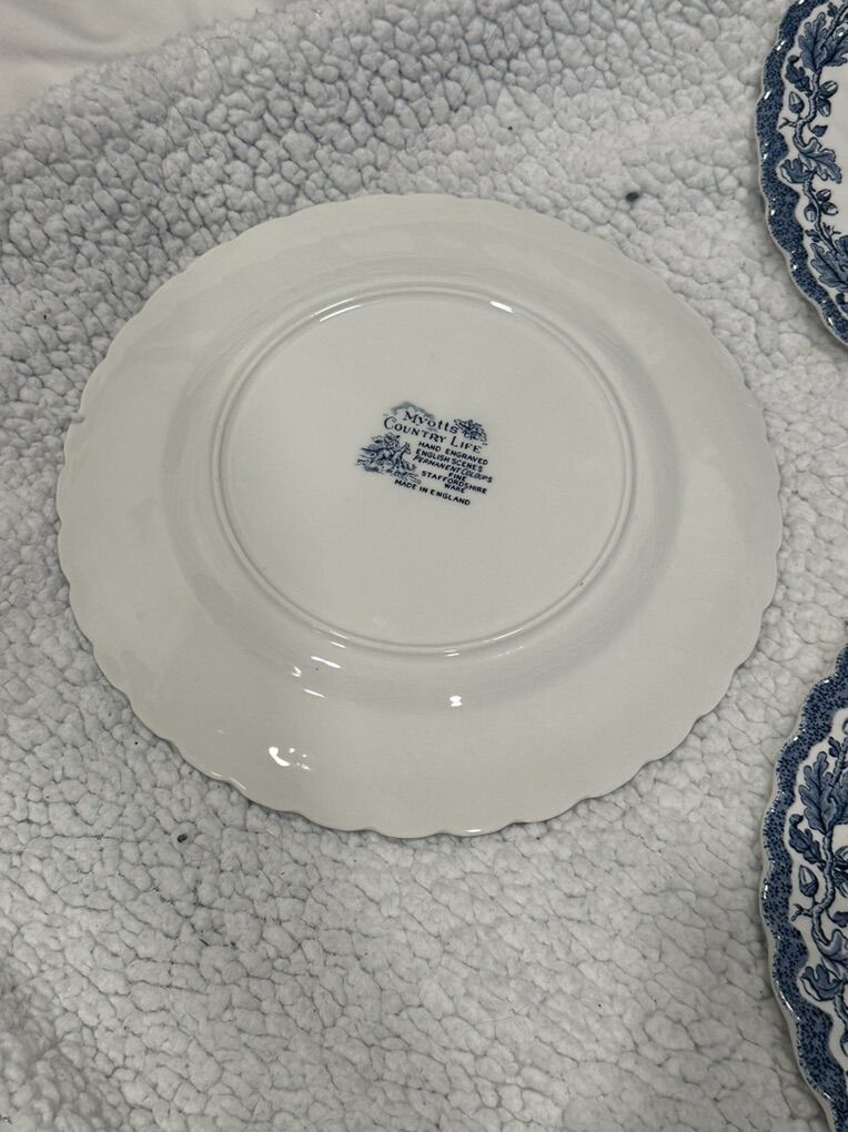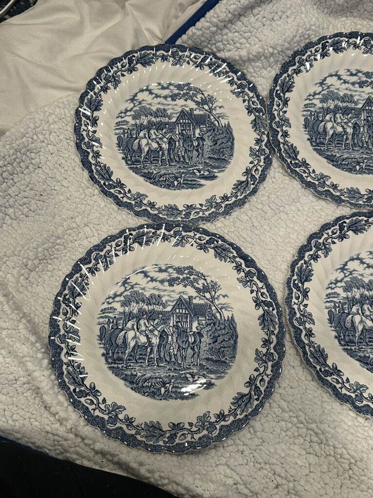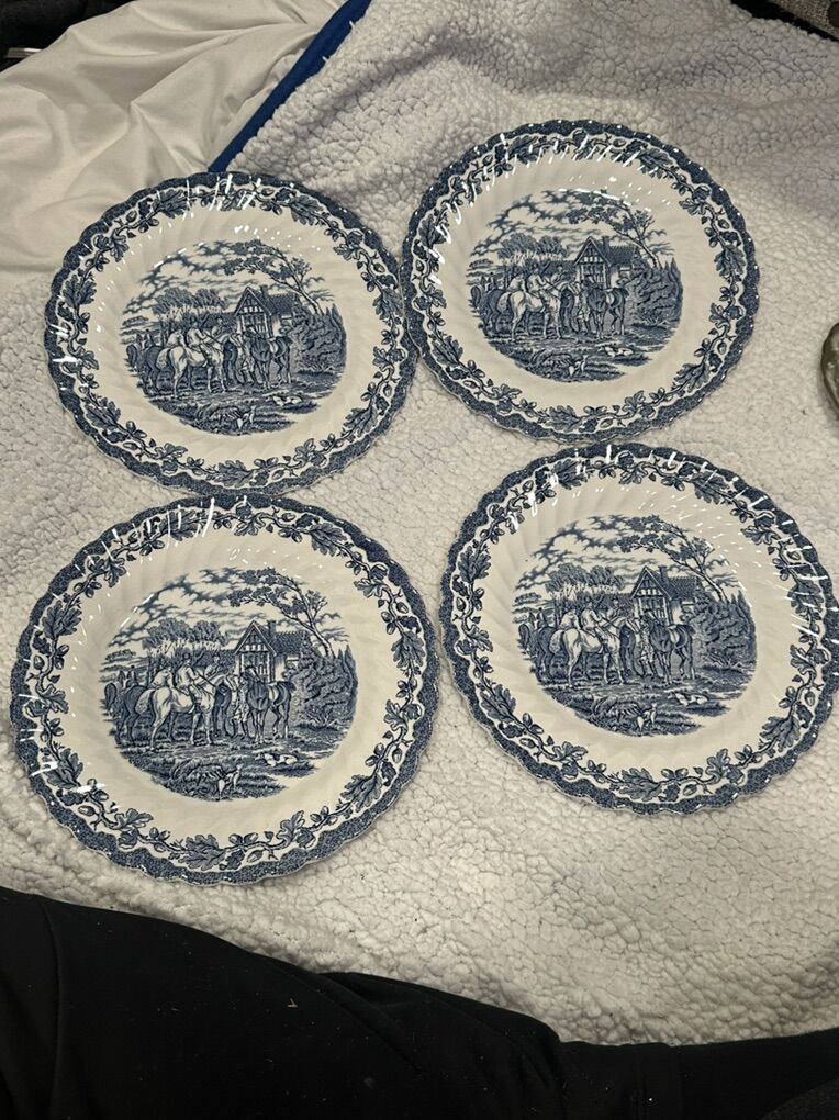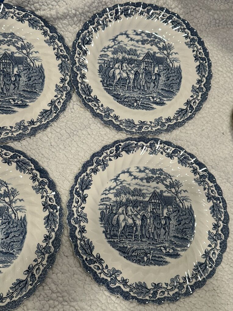 VenmoMyott's Country Life Staffordshire Ware plate with a blue transferware hunting scene\