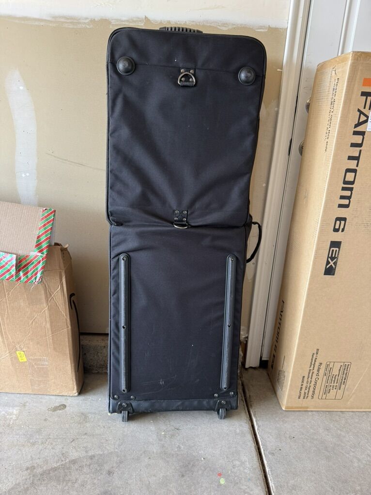 Used SKB keyboard case with wheels and thick padding on top for a 61 keys 44”x 18”x 6”. $150 Case only