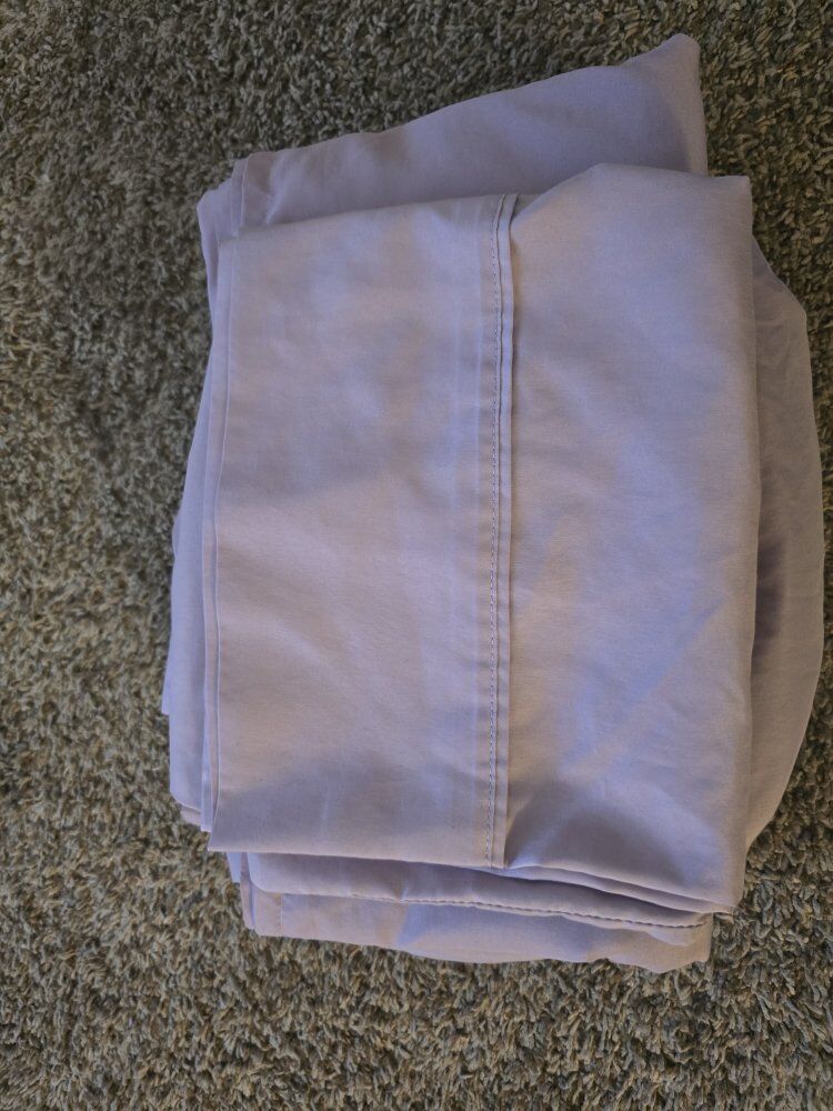VenmoTwin sheets in lavender. Pictures show same set with & without camera flash. Set includes mattress sheet, fitted sheet & pillow case. In great condition. Asking $5 for all. Cash or venmo only.