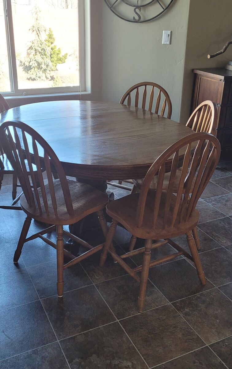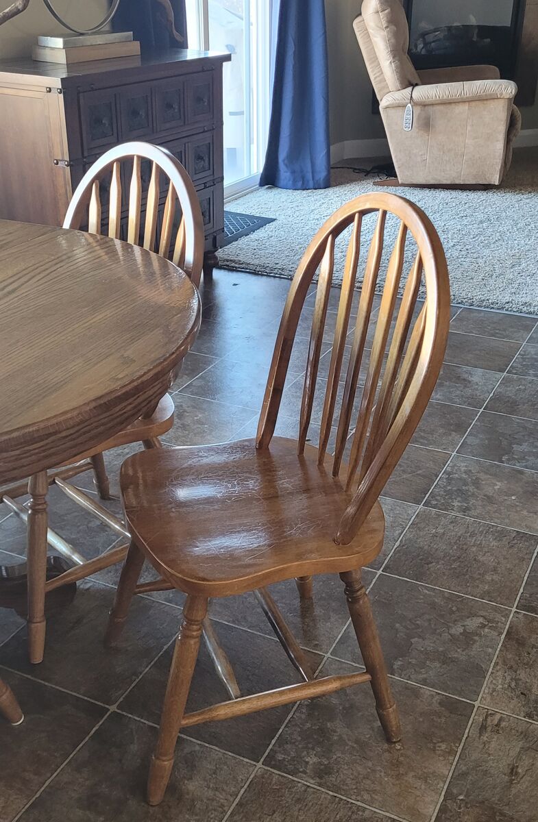 VenmoThis table has been loved for lots of years and is still in good shape. The chairs do have scratches on the seats from wear, but they're sturdy.