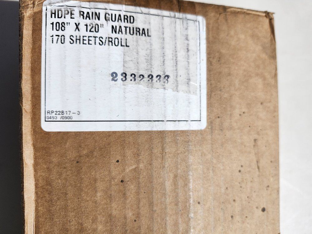 New HDPE Rain Guard 108"x120", 170 Sheets/Roll. High Density polyethylene sheeting used for water diversion and as a weather barrier. It is waterproof, non-biodegradable, and resistant to mildew, rot, rodents and insects. Perfect for pond liners. Asking $25. Located in Riverdale. Cash only and pick up only.