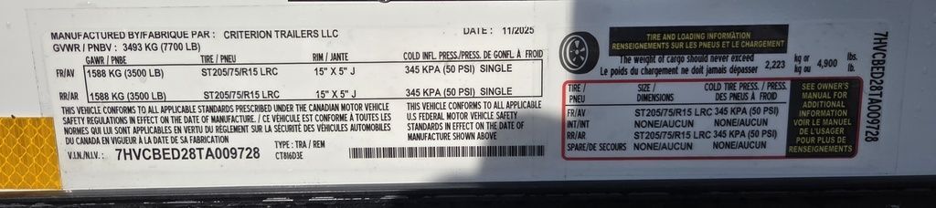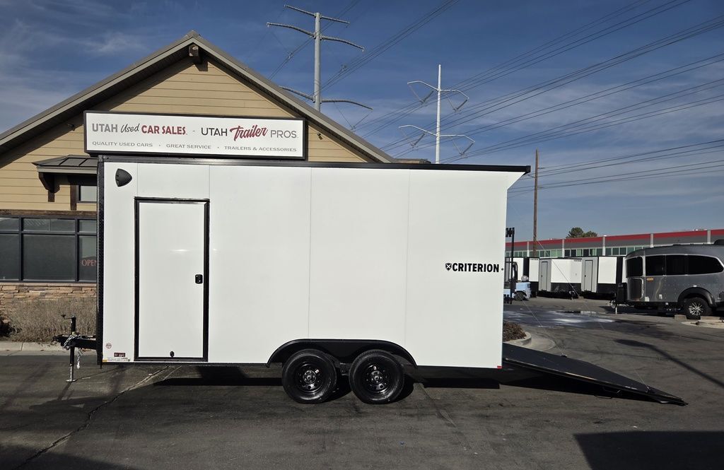 $131 A MONTH WITH ZERO DOWN WITH OUR LOCAL CREDIT UNION PARTNER!!! EASY IN HOUSE APPROVALS WITH NO PRE PAYMENT PENALTIES!!! CRITERION UTV Pkg!!! 6 inches added height for an 87 Inch Rear Entry Height, and a 90-inch interior Height!!! Extra Tough Poly Bead Rubber Floor! Industry Leading .080 PolyCor Aluminum Exterior!!! Rear Spoiler with LED Load Lights! Roof Vent. 6x 5000# Heavy Duty Recessed and back plated D-Rings!!! Drivers Side Side Access Door! Fuel Pass Through Door! Criterion Trailers are Super Premium Steel Framed Trailers with a 3 Year Factory Warranty!!! Come take a look at Criterion to see unparalleled quality!!! 7TA009728